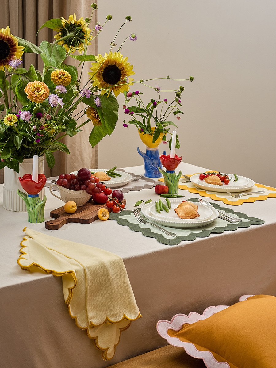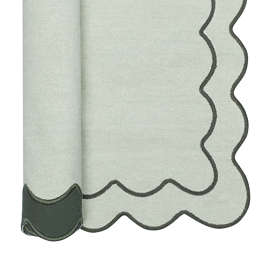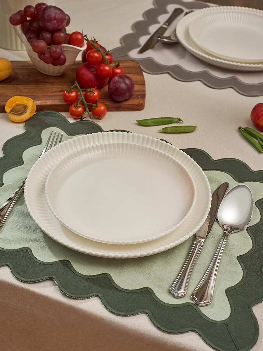 Салфетка под приборы с контрастным кантом зеленого цвета из коллекции Trendy Ruffles сделает любую сервировку стильной, позволив экспериментировать с текстурами и формами. Текстиль с волнистой отделкой, напоминающей изящные раковины морских гребешков, стал ярким элементом стиля Ар Деко – и сейчас возвращается в моду, появляясь в самых актуальных интерьерных решениях.