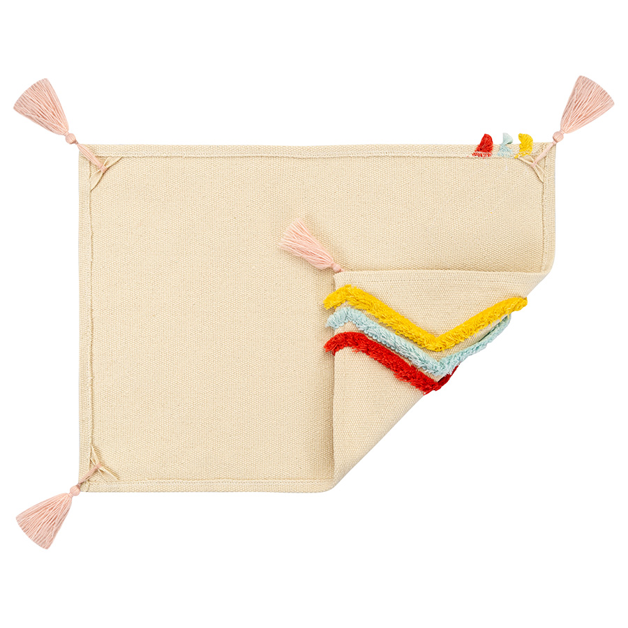 С помощью этой салфетки можно сделать повседневную сервировку чуть более изысканной, а праздничной добавить стильной многослойности. По краю салфетка декорирована объемными зигзагообразными линиями, а по углам — легкими розовыми кисточками. Несмотря на яркий, праздничный, дизайн такие салфетки очень практичны — они защищают скатерть и поверхность стола от загрязнений.