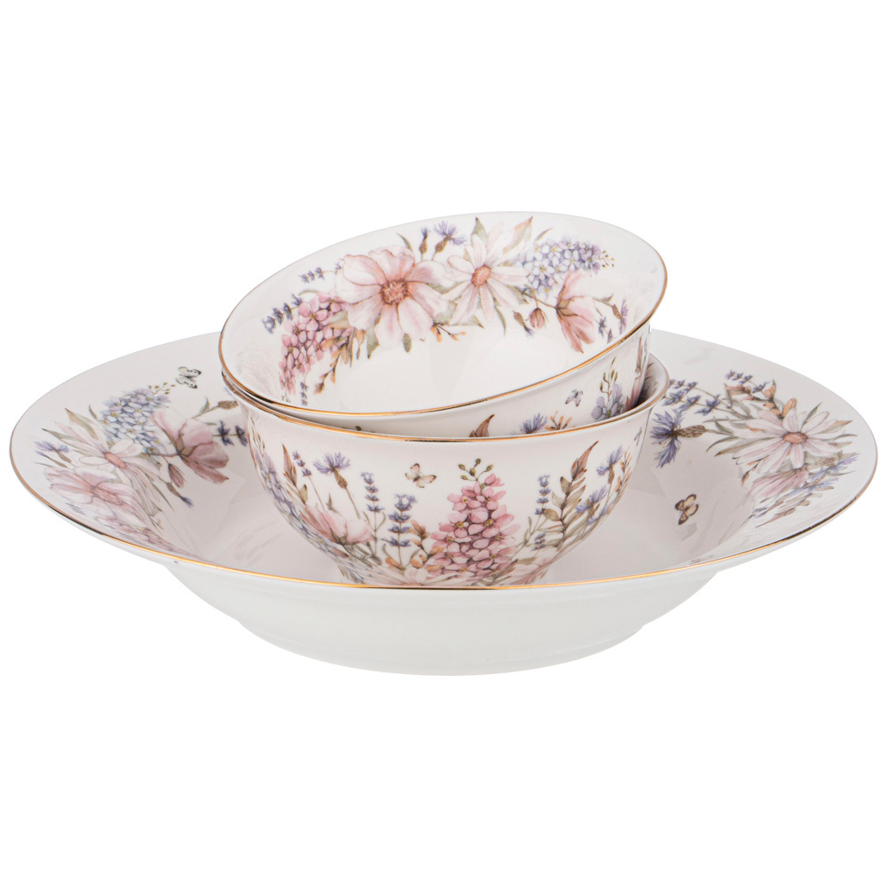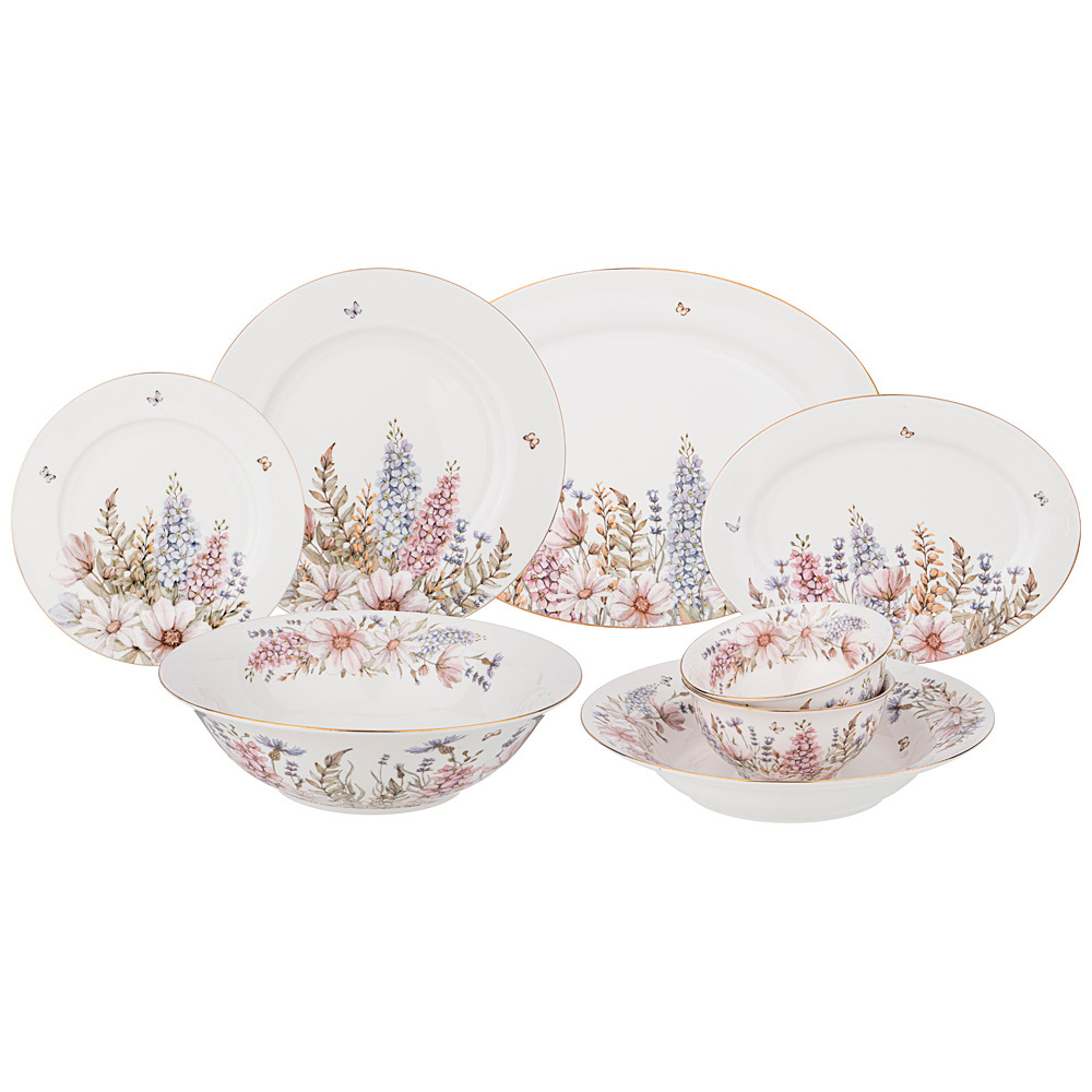 Комплектность: тарелка закусочная 20,5 см – 6 шт., тарелка суповая 23 см – 6 шт., тарелка обеденная 25,5 см – 6 шт., салатник 11,5 см – 2 шт., салатник 23 см – 1 шт., блюдо овальное 25,5 см – 1 шт., блюдо овальное 35,5 см – 1шт.