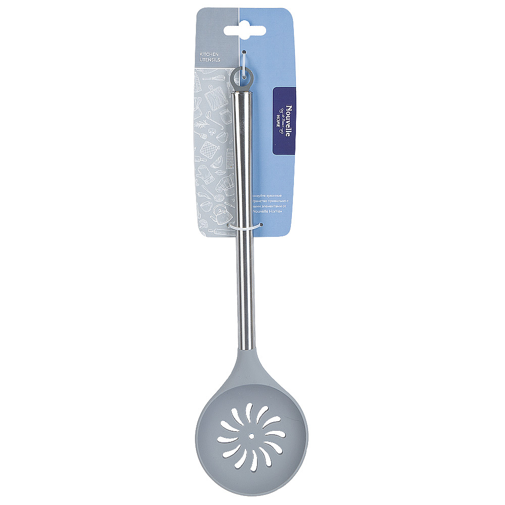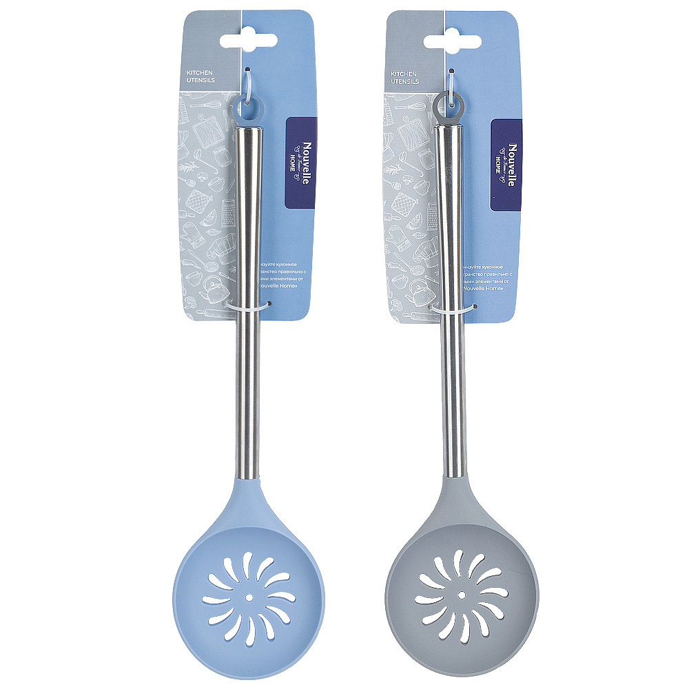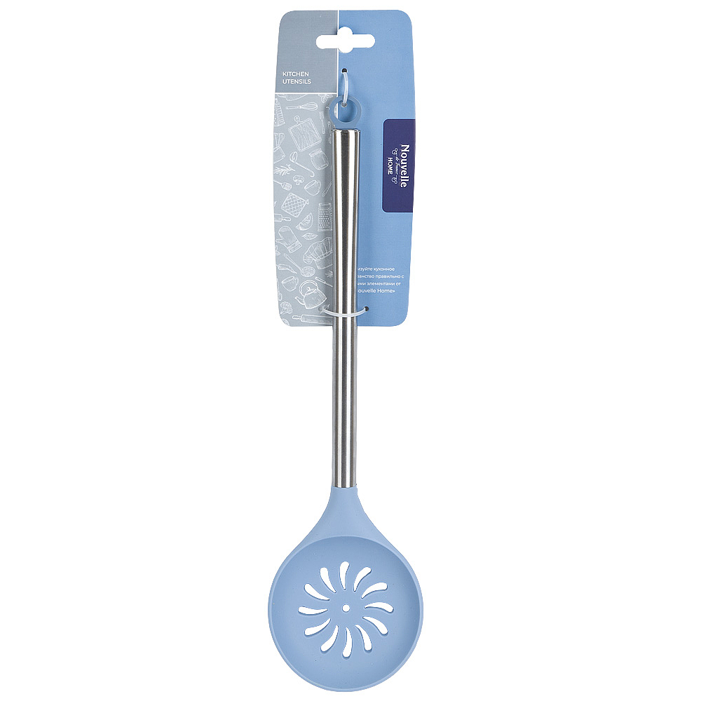 Коллекция – это широкий выбор кухонных приборов из высококачественной нержавеющей стали и силикона. Коллекция представлена в двух цветах: серый и голубой. Выберите один из цветов или создайте своё сочетание, смиксовав приборы разных цветов. Тактильно приятная ручка из нержавеющей стали и силиконовая рабочая поверхность, обладающая впечатляющей гибкостью и выдерживающая высоки температуры (до 230 градусов) будут бесподобно смотреться на вашей кухне. Каждый предмет оснащен отверстиями для подвешивания. Рекомендации по уходу: можно мыть в посудомоечной машине. Коллекция отлично сочетается с другими коллекциями от Nouvelle home.