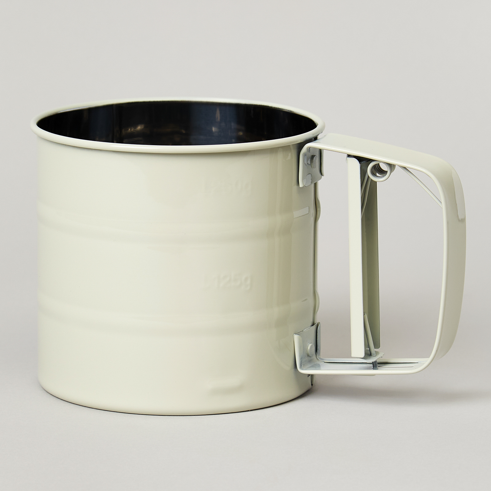 Мука - главный компонент вкусной и воздушной выпечки, поэтому прежде чем, приступить к работе, ее нужно просеять. С этой задачей прекрасно справится сито для муки. Сито выполнено в виде кружки с двойным дном и удобной ручкой, в которую встроен пружинный механизм. При нажатии на него лопасти на дне кружки вращаются и разбивают образовавшиеся комочки. Это делает процесс просеивания быстрым и удобным.Сито для муки имеет эргономичный дизайн. Небольшие размеры 10х9 см обеспечивают компактность и удобство в хранении. Кружка - сито для муки станет прекрасным решением для любой хозяйки!