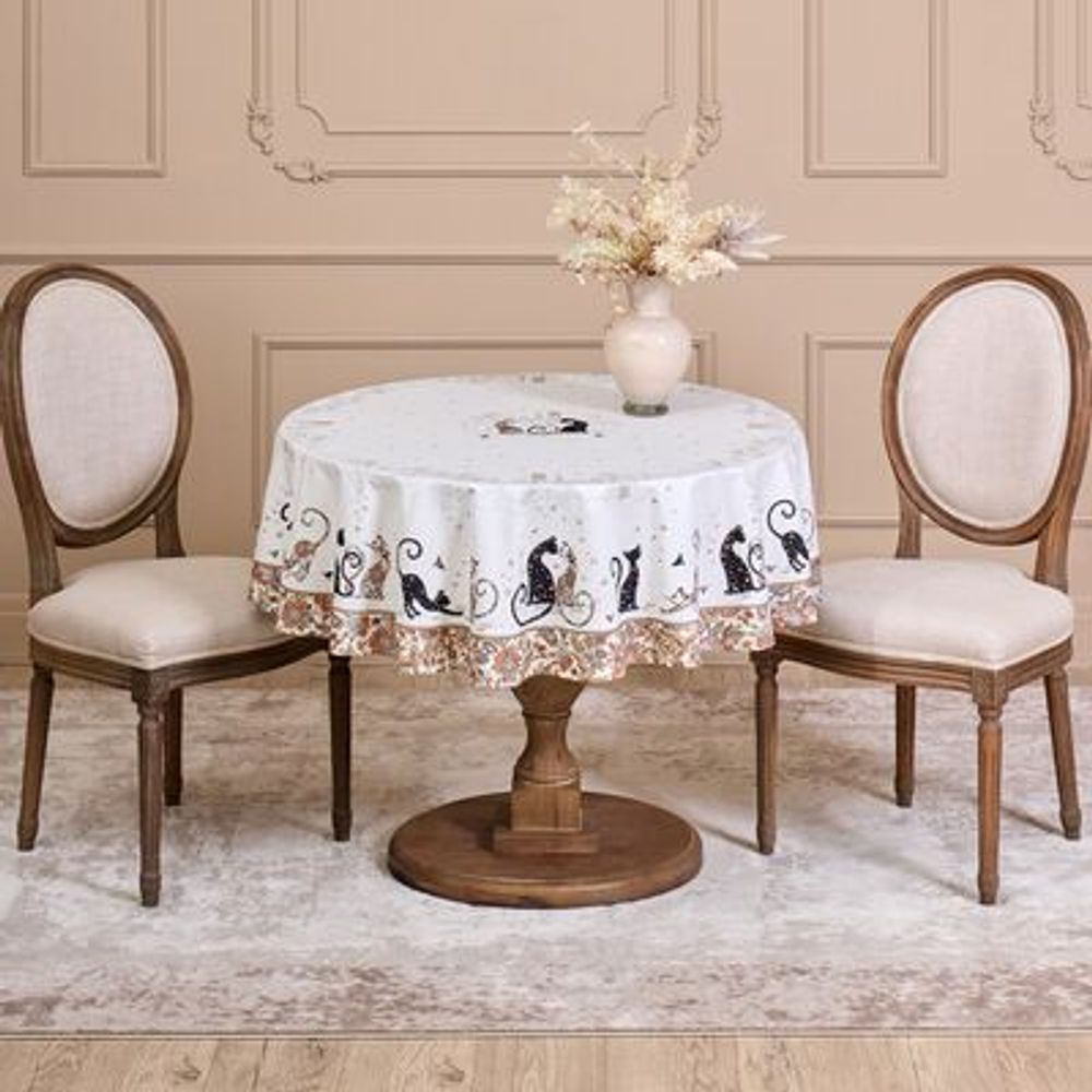 СКАТЕРТЬ КРУГЛАЯ "ПАРИЖСКИЕ КОТЫ" ,150 СМ, ТВИЛЛ ,БЕЛЫЙ,ПРОПИТКА