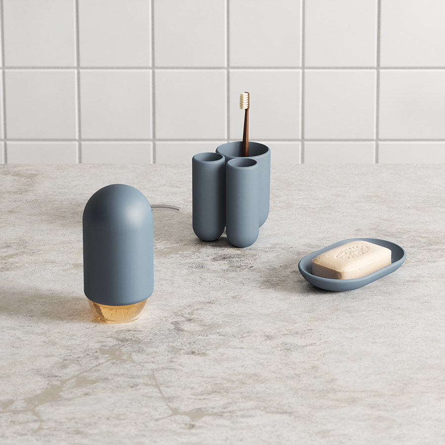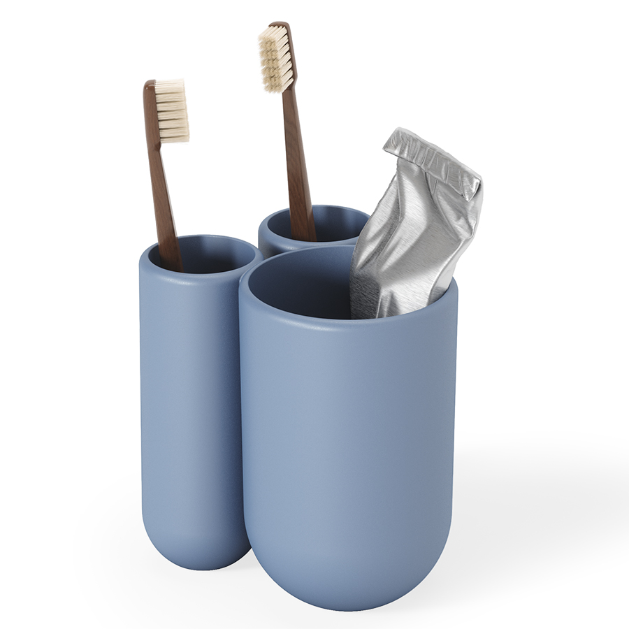Стакан в лаконичном дизайне позаботится о сохранности зубных щеток.