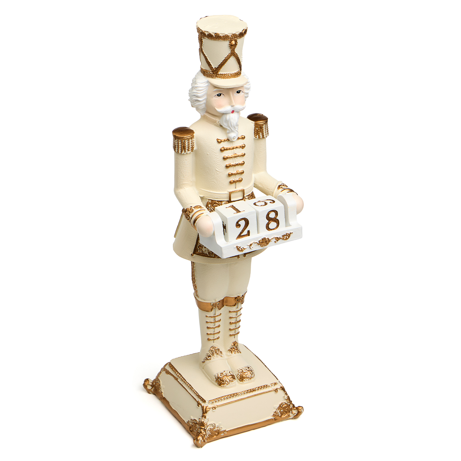 Пусть каждый день до Нового года станет маленьким праздником — с этим величественным Щелкунчиком из прочного и благородного полистоуна! Он словно вышел из знаменитой балетной сказки: в парадной форме, с высокой шляпой, золотыми пуговицами и сапогами — и держит в руках календарь, где цифры «31» напоминают о главном чуде года. Идеален как украшение и как талисман, отсчитывающий последние дни до Рождества и Нового года.