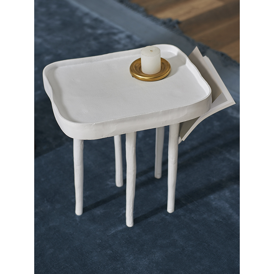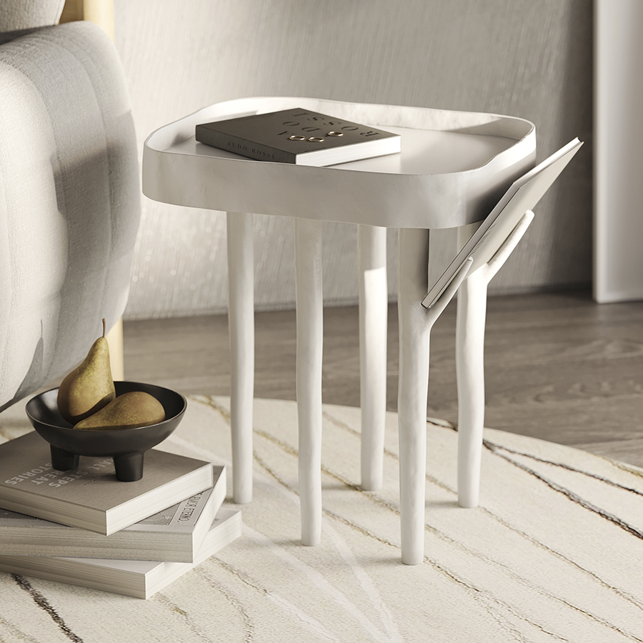 Столик приставной Macer сделает любое пространство более элегантным и утонченным. Благодаря дизайну с отсылкой к природной тематике этот предмет мебели освежит интерьер и поможет в создании легкой, непринужденной атмосферы. Конструкция из алюминия обладает высокой прочностью, при этом мало весит. Столешница имеет специальные бортики, что исключает случайное падение предметов. Отсутствие острых углов обеспечивает безопасную эксплуатацию.