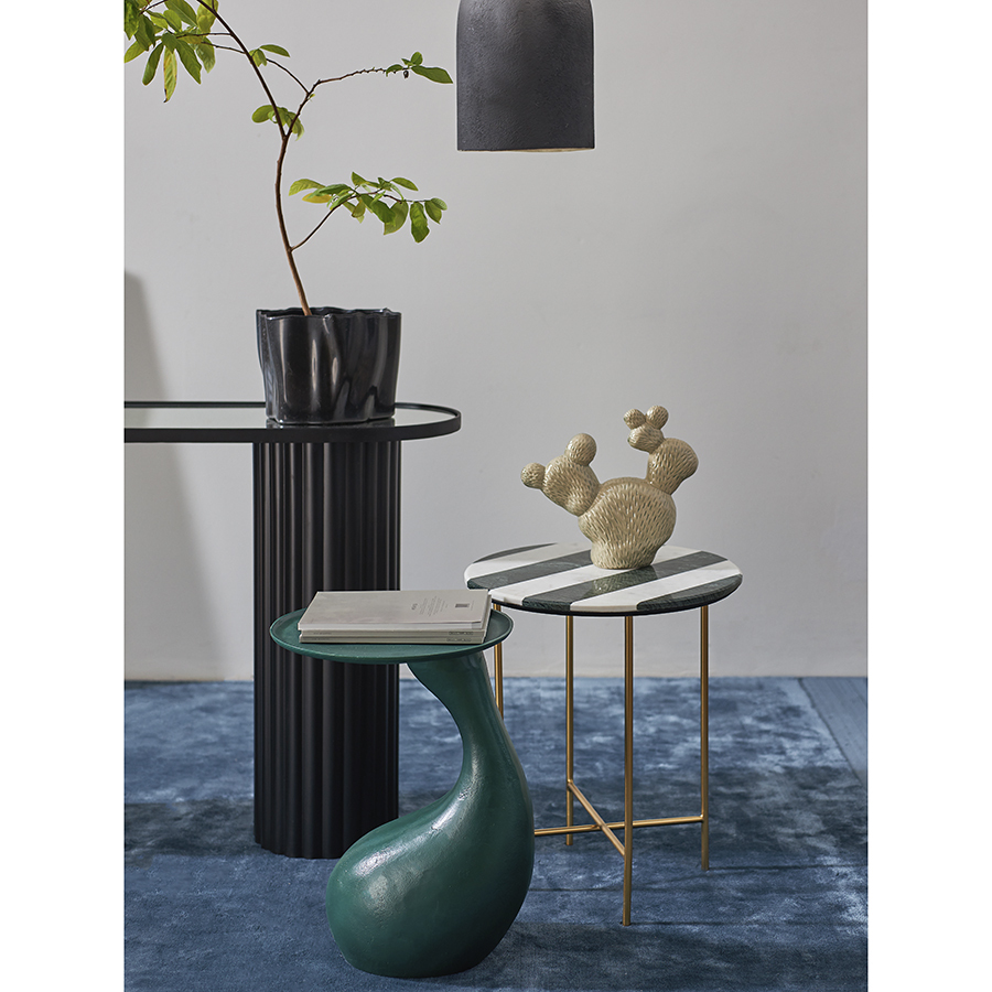 Благодаря необычной форме столик приставной Tiu добавит в интерьер динамику и сделает акцент на оригинальном оформлении. Конструкция выполнена из алюминия, что делает ее легкой, но при этом прочной. Круглая столешница имеет специальные бортики, которые исключают случайное падение предметов и создают лаконичный силуэт. Столик великолепно подойдет для оформления гостиной, спальни, рабочего кабинета, студии или офиса в современном стиле.