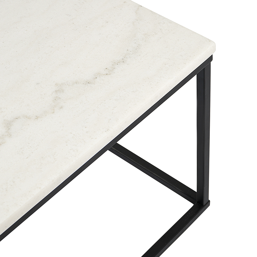 Материалы: столешница – мрамор, каркас – сталь с порошковым покрытием. Размеры: 90х40х35 см. Цвет: белый/черный.