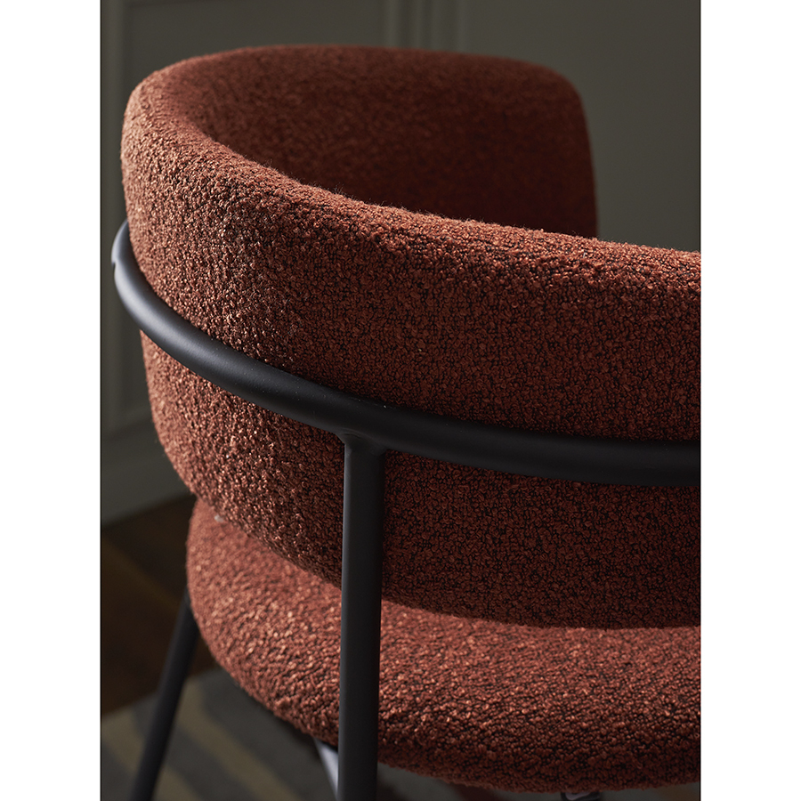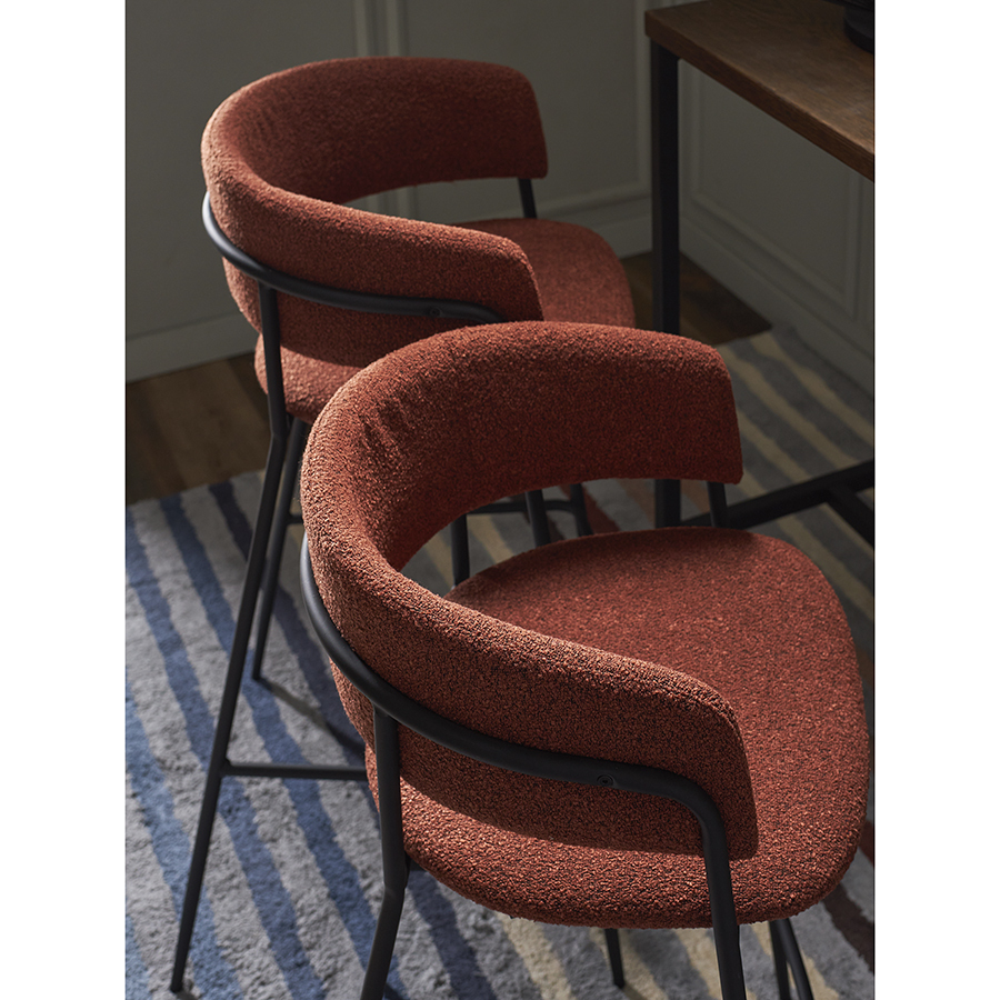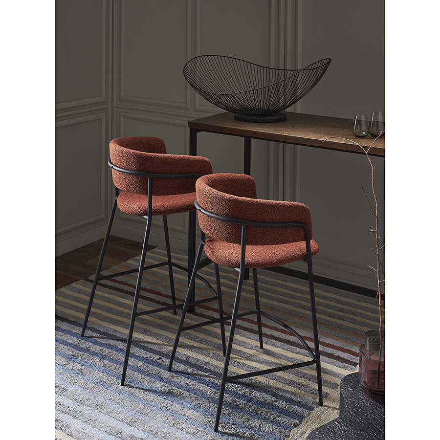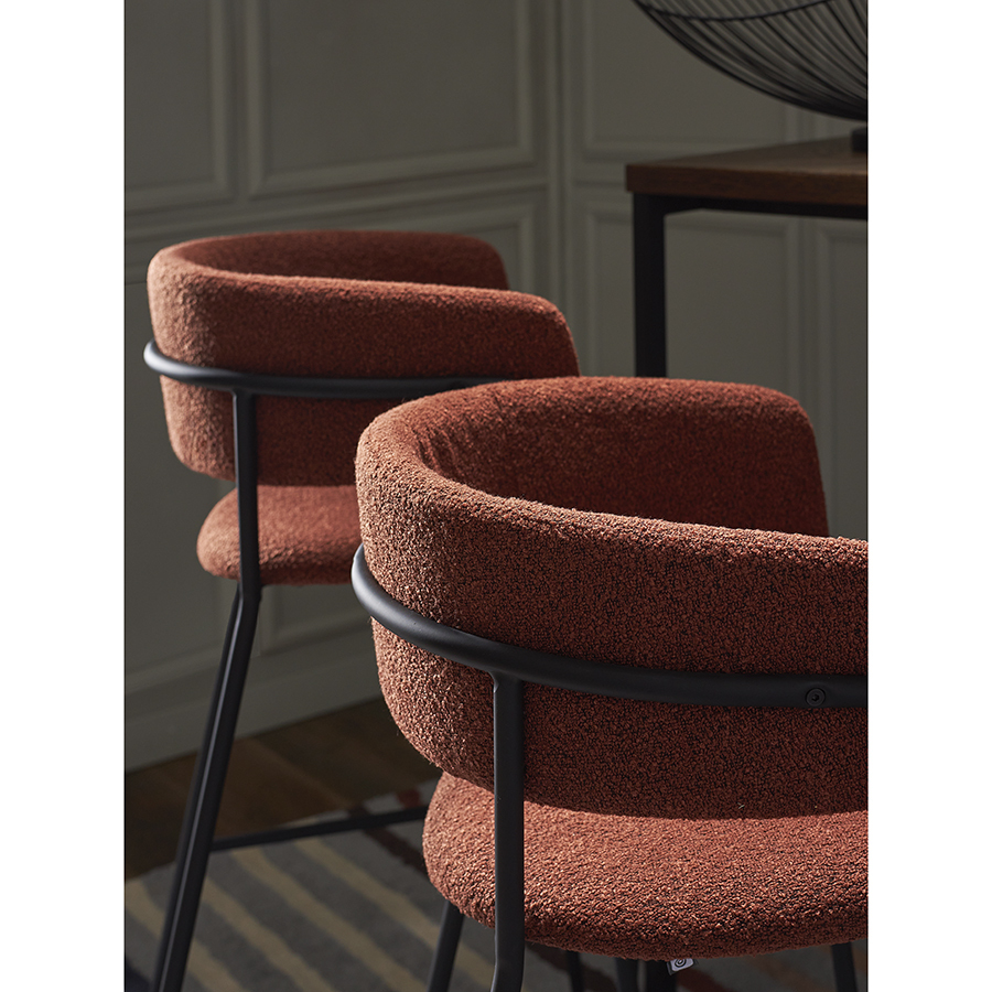 Стул барный Helning с буклированной обивкой непременно понравится любителям уюта и стильных предметов интерьера. Дизайнеры по всему миру выбирают мебель “букле”, так как она смотрится органично даже в самых минималистичных пространствах, добавляя оформлению особый шарм и глубину.