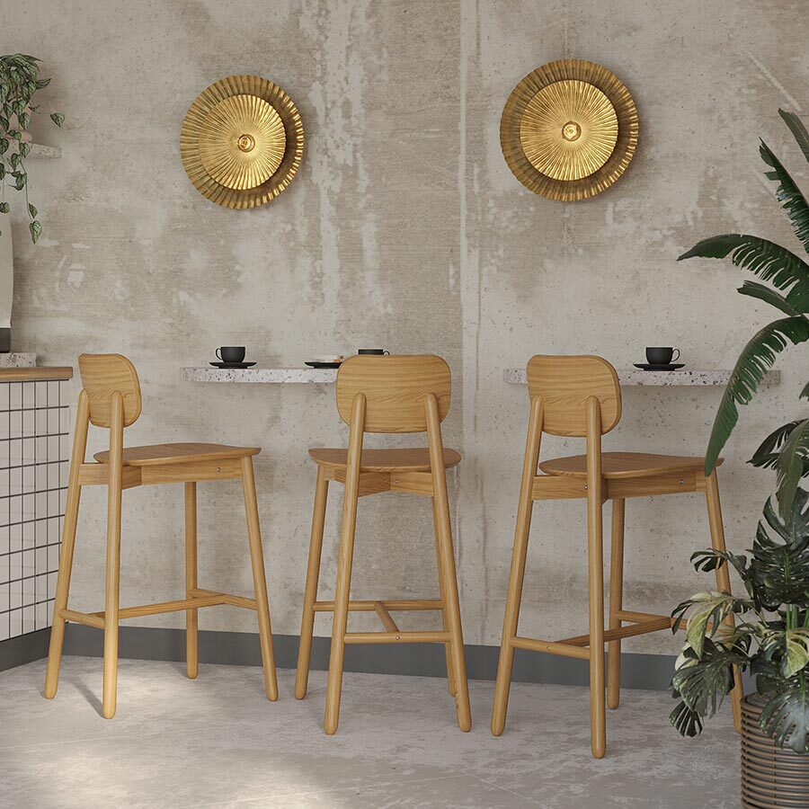 Cтул барный изготовлен из массива ясеня – твердой породы древесины, плотность и прочность которой не уступает характеристикам дуба. Благодаря прекрасным эксплуатационным свойствам материала готовое изделие устойчиво к износу, деформации, ударам, имеет высокие показатели практичности и экологической безопасности. Наличие специальной перекладины позволяет удобно расположить ноги. Деревянная мебель с лаконичным дизайном всегда актуальна, отлично сочетается с любыми стилевыми решениями, что является ее неоспоримым преимуществом.