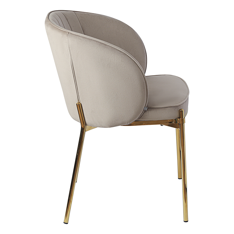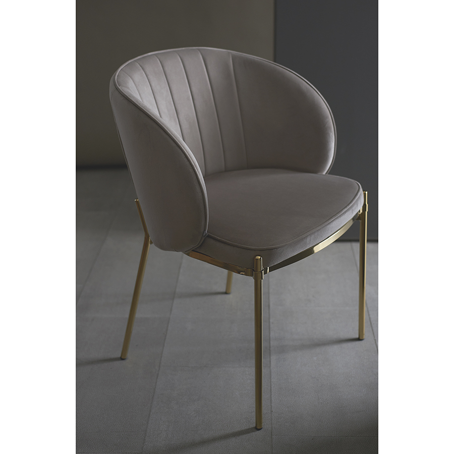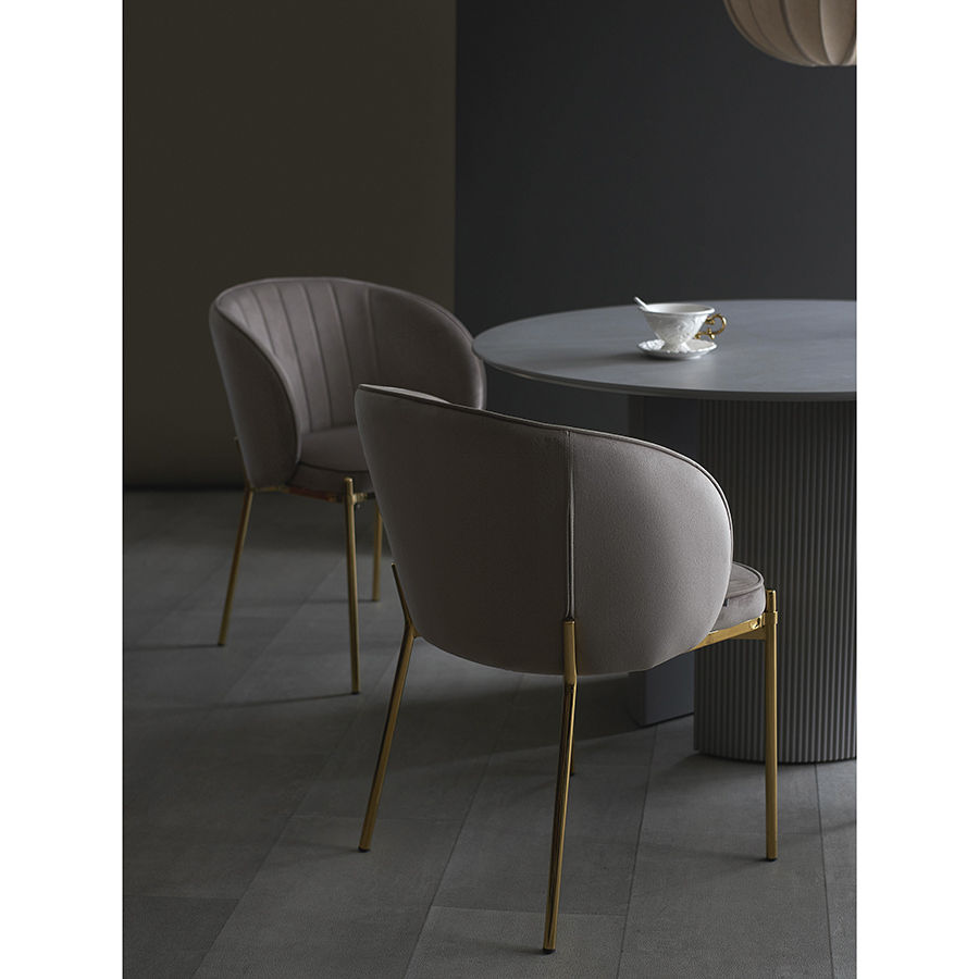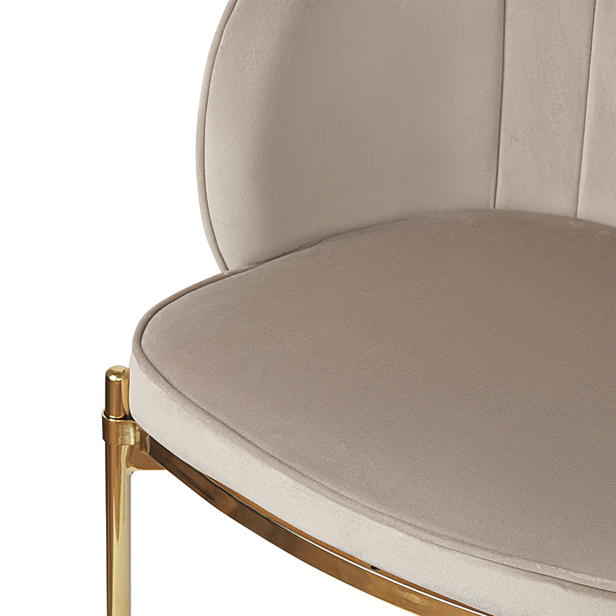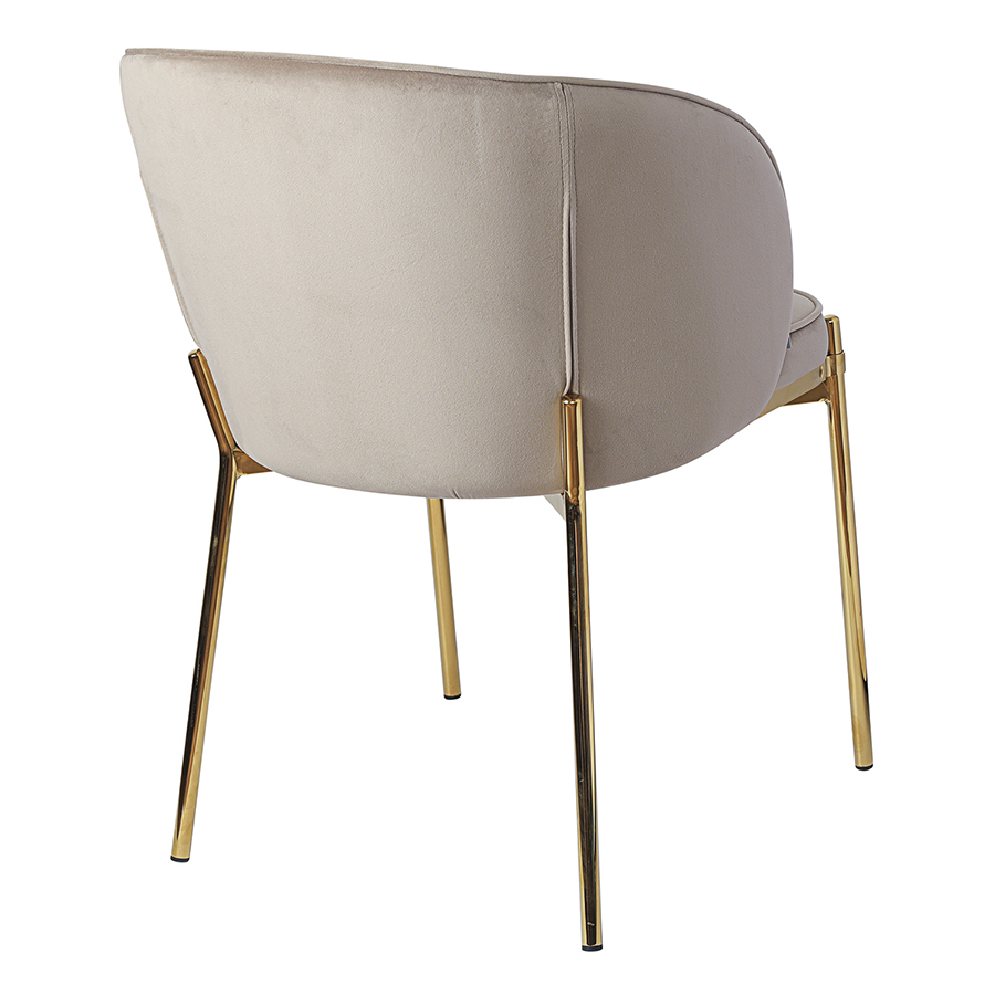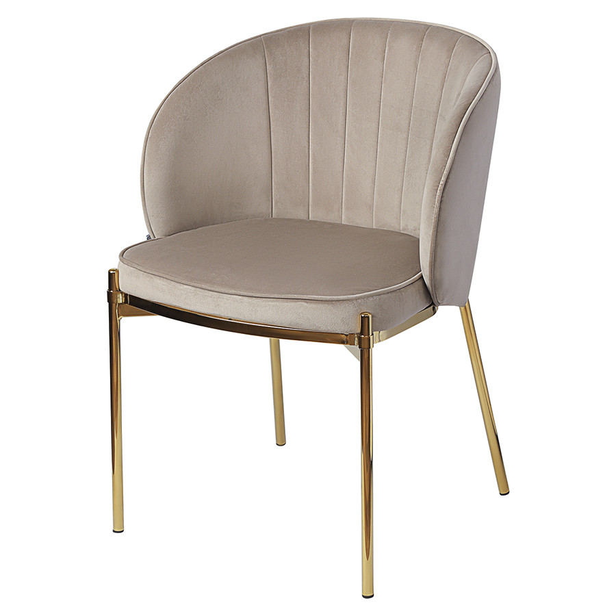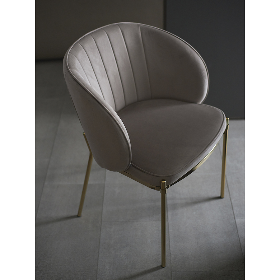 Комфорт во время отдыха на стуле создается за счет мягкого сиденья с наполнителем из пенополиуретана и высокой закругленной спинки. Обивка из бархатистого велюра, украшенная декоративной строчкой, придает модели особый шарм. Эстетический потенциал материала настолько высок, что ему сложно найти конкурентов. Помимо презентабельного вида и приятных тактильных ощущений, ткань обладает хорошими эксплуатационными характеристиками, такими как прочность, износоустойчивость и долговечность. Ножки мебели выполнены из стали, что обеспечивает конструкции надежность и защиту от коррозии.