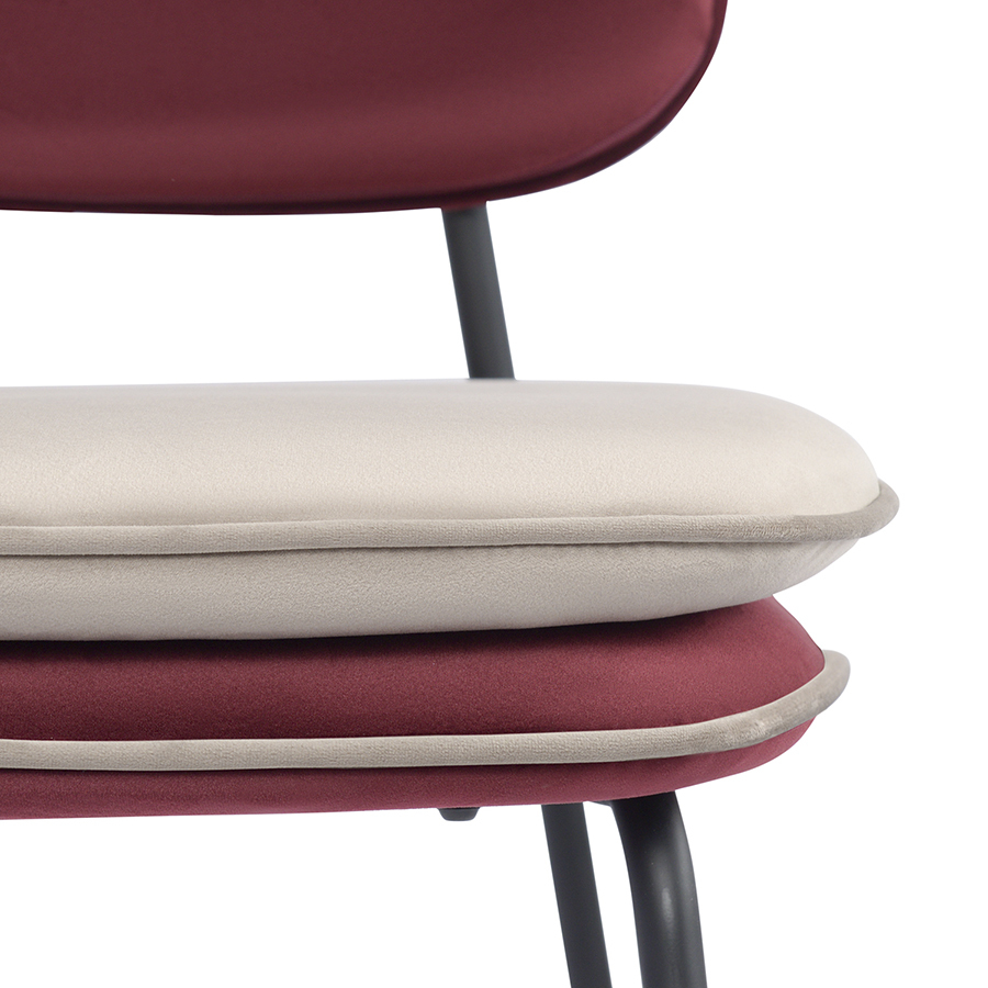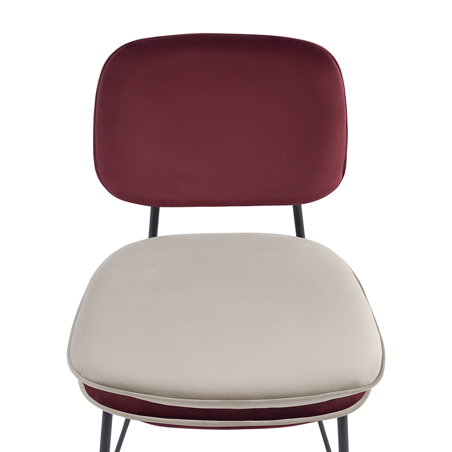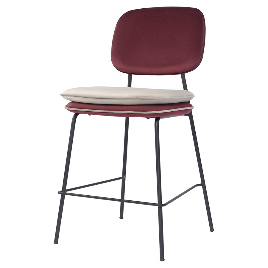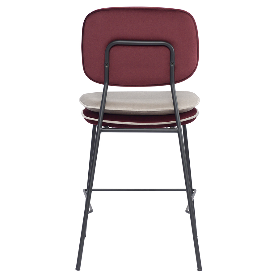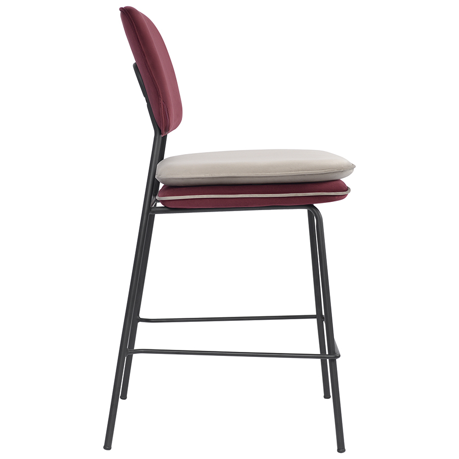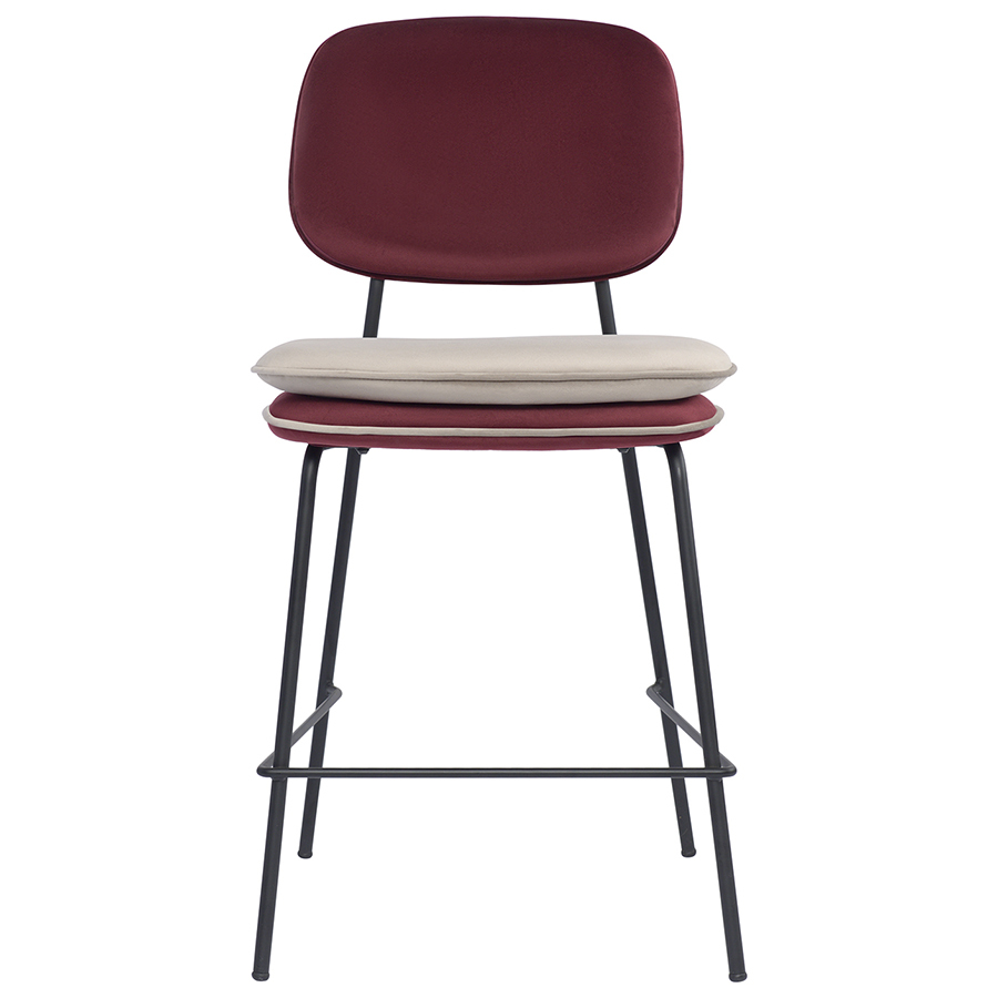 Стул полубарный с контрастным кантом Pea, велюр, бордовый/бежевый