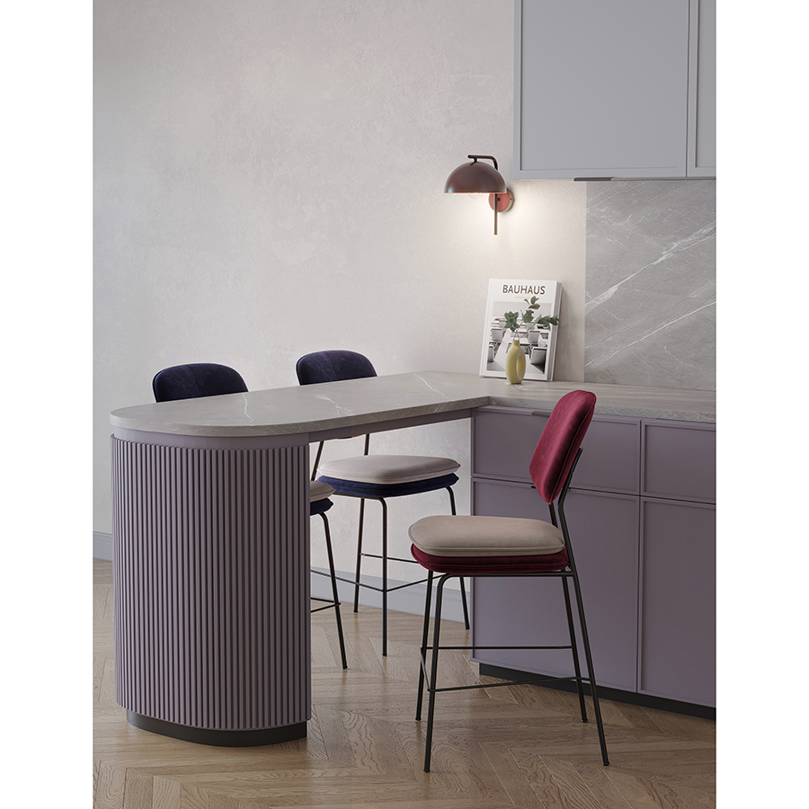 Стул полубарный Pea с контрастным кантом и мягкой обивкой из бархатистого велюра станет настоящим украшением интерьера и идеальным выбором для ценителей качественной и элегантной мебели.