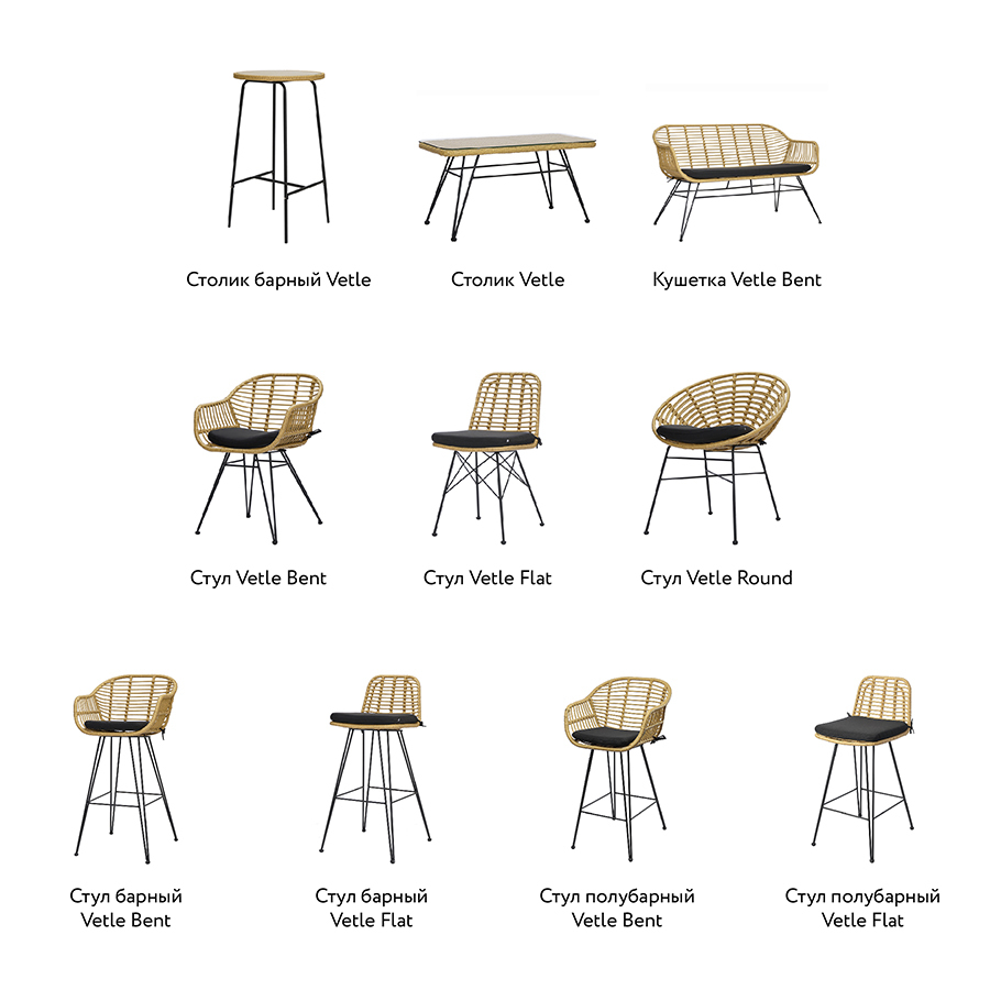 Стул полубарный Vetle Flat – великолепное сочетание привлекательного дизайна, практичности и долговечности. Мебель с ротанговым плетением делает любое пространство уютным и идеально подходит для обустройства зоны отдыха в доме, на террасе или в саду. Модель идеально вписывается в такие стилевые решения, как эко, кантри и прованс.