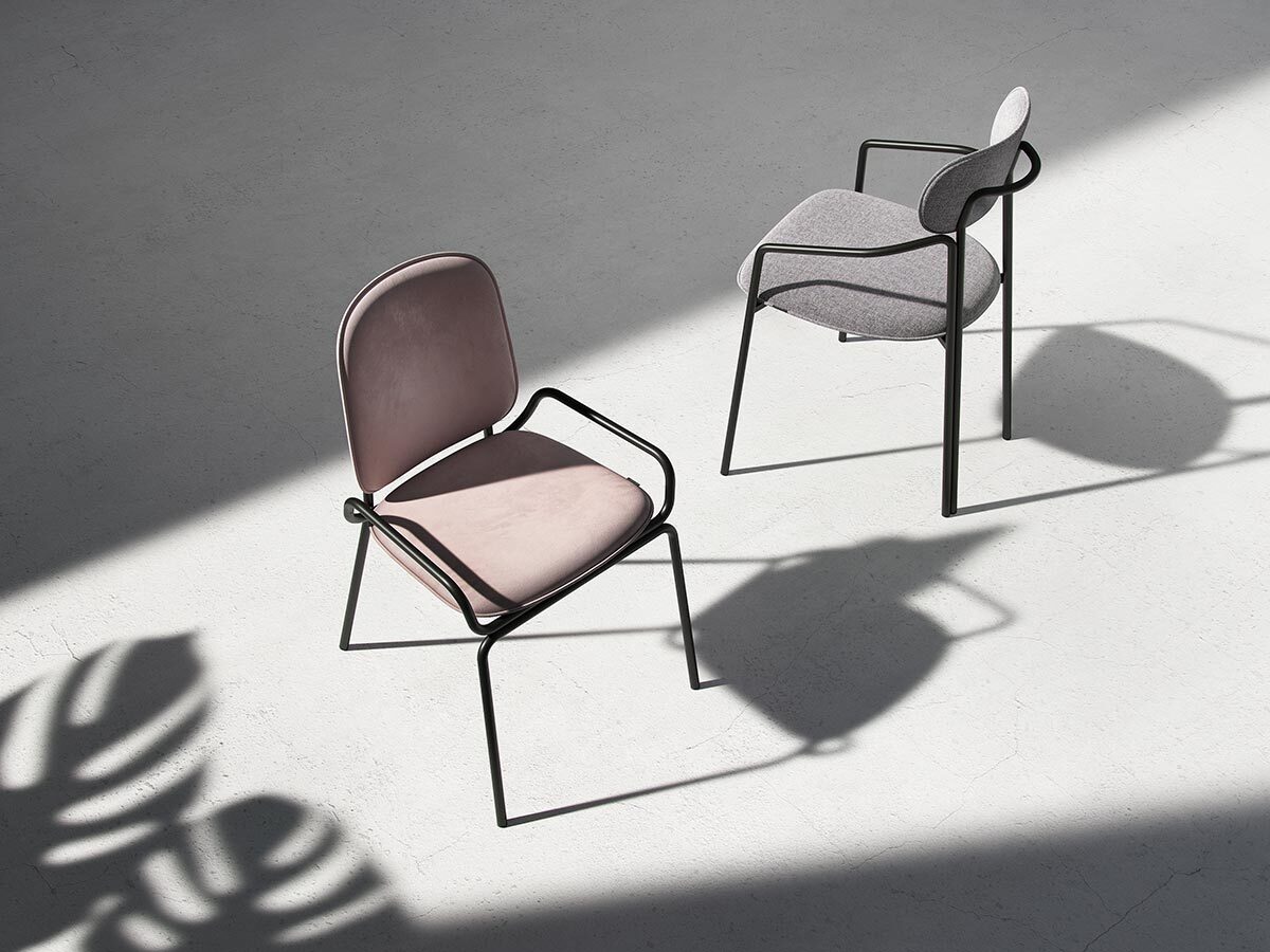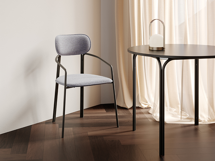 Каркас стула Round состоит из трех стремящихся вверх элементов, которые образуют округлый, словно окутывающий корпус. За счет отсутствия прямых углов создается легкий, гармоничный силуэт.