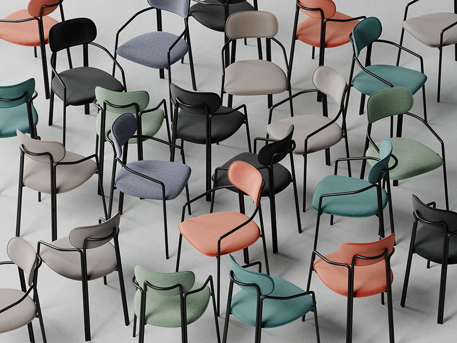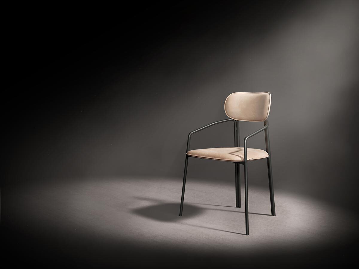 Каркас стула Round состоит из трех стремящихся вверх элементов, которые образуют округлый, словно окутывающий корпус. За счет отсутствия прямых углов создается легкий, гармоничный силуэт.