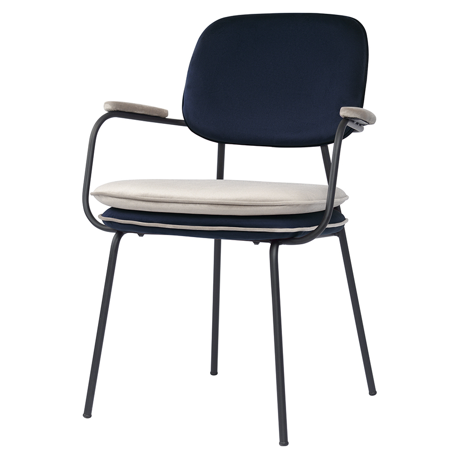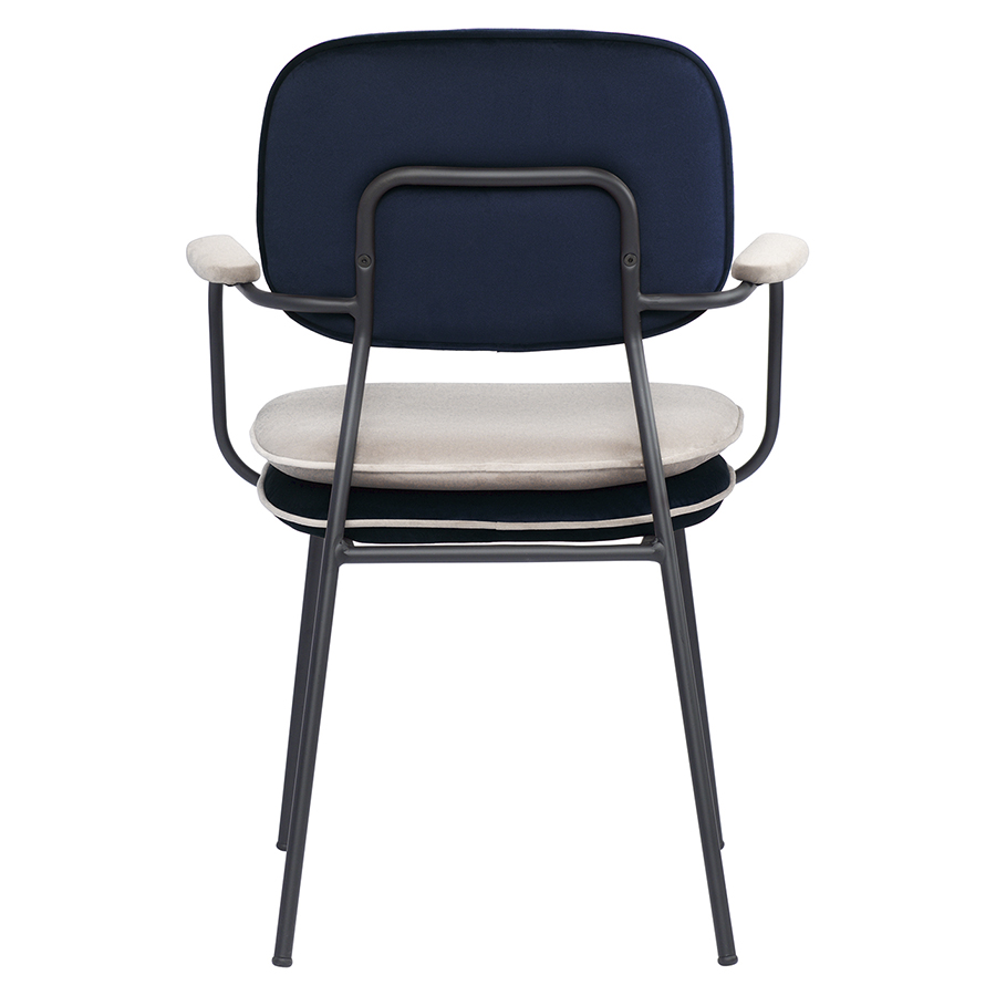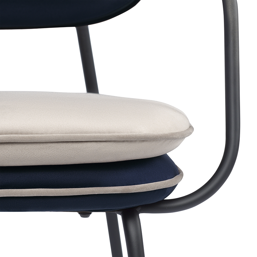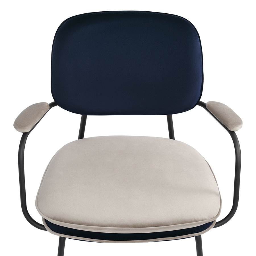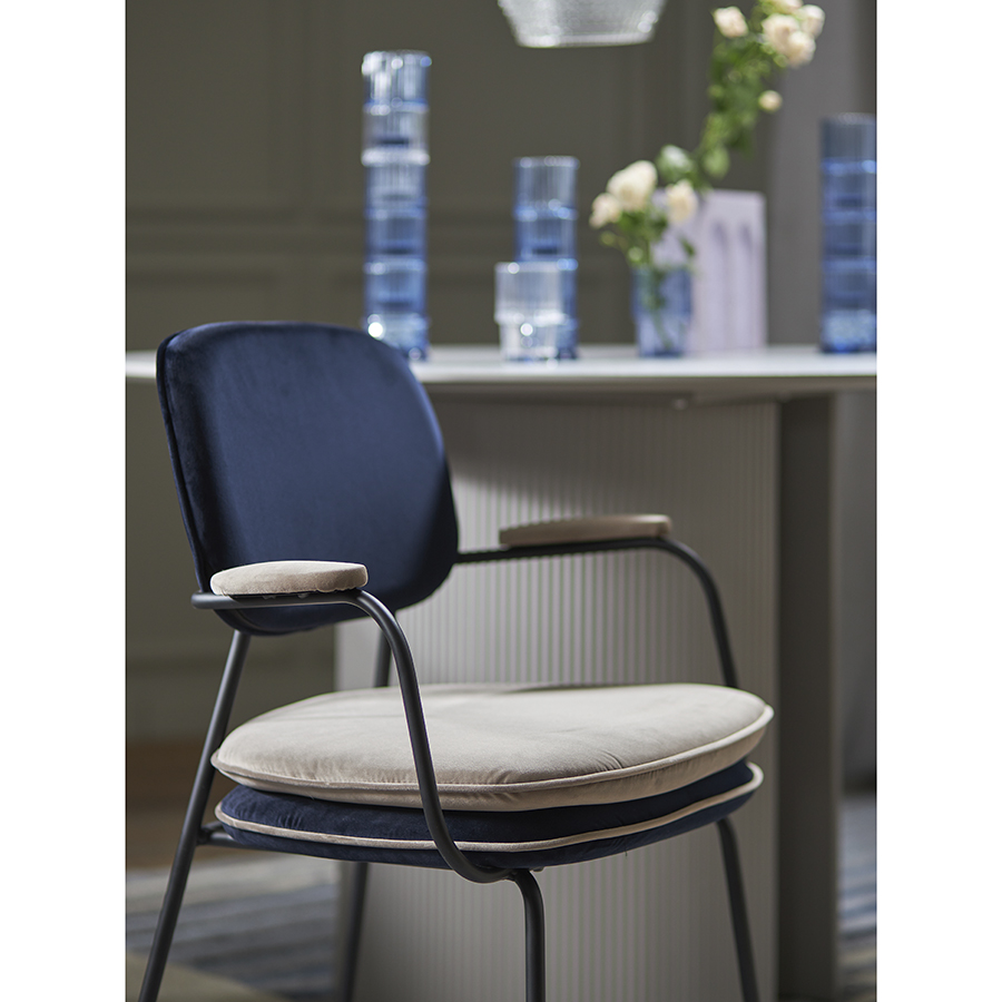 Стул с подлокотниками и контрастным кантом Pea, велюр, темно-синий/бежевый