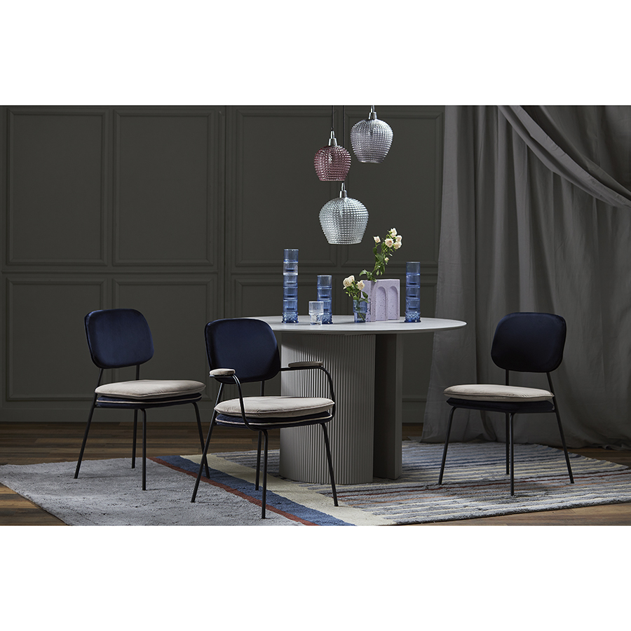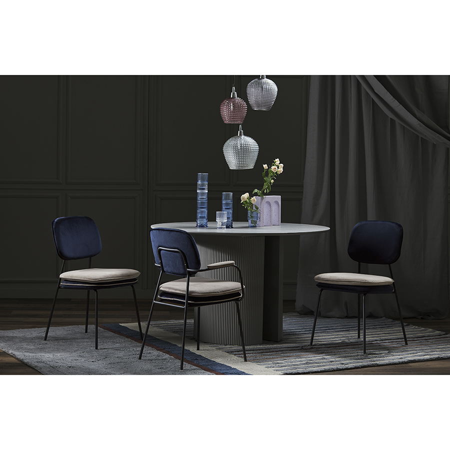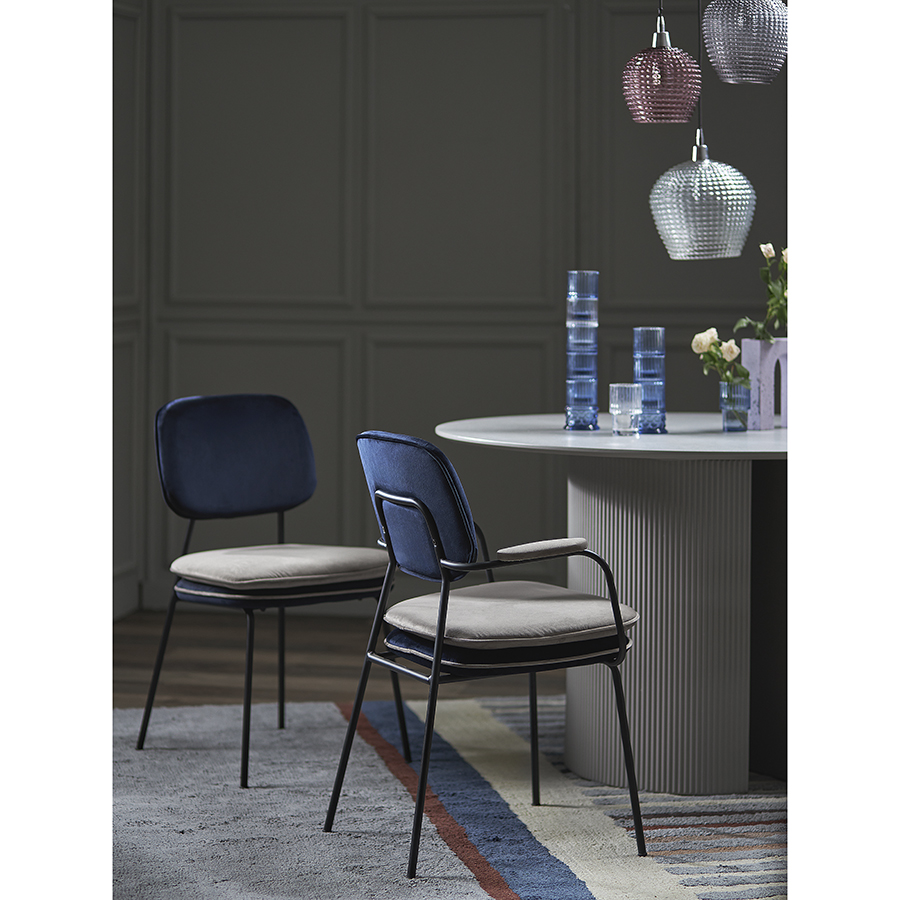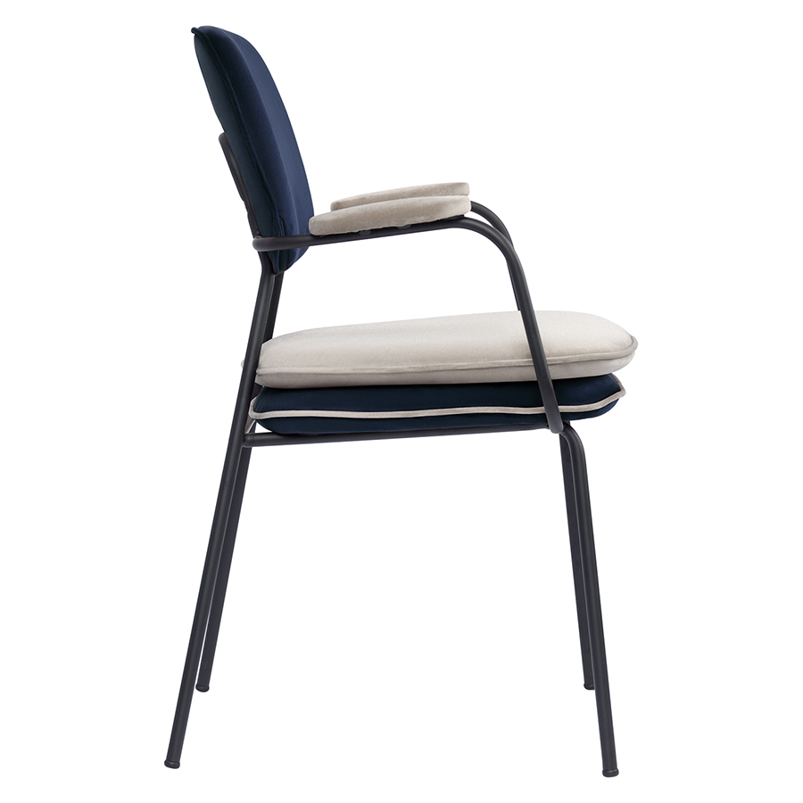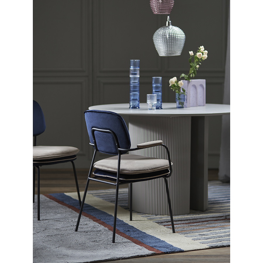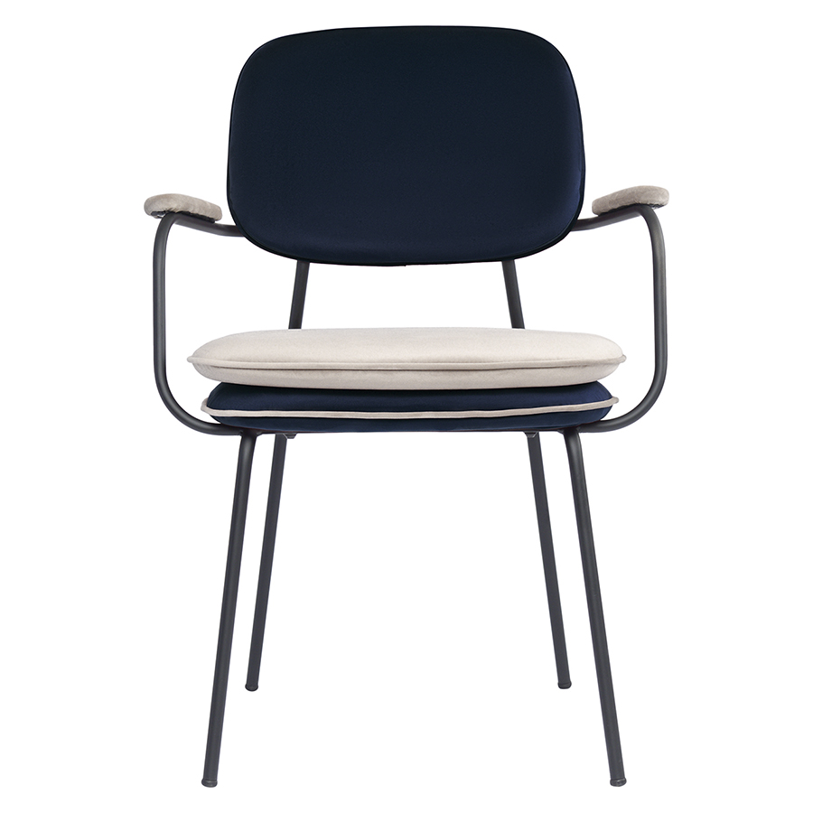 Стул с подлокотниками и контрастным кантом Pea, велюр, темно-синий/бежевый