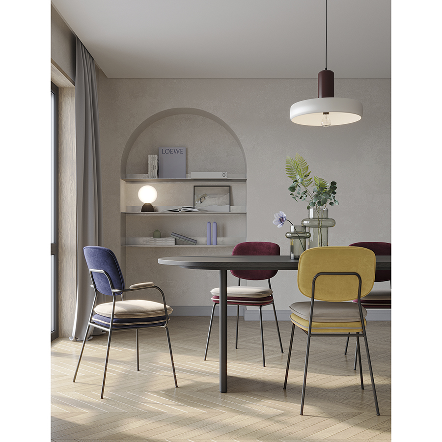 Стул Pea с подлокотниками, контрастным кантом и мягкой обивкой из бархатистого велюра станет настоящим украшением интерьера и идеальным выбором для ценителей качественной и элегантной мебели.