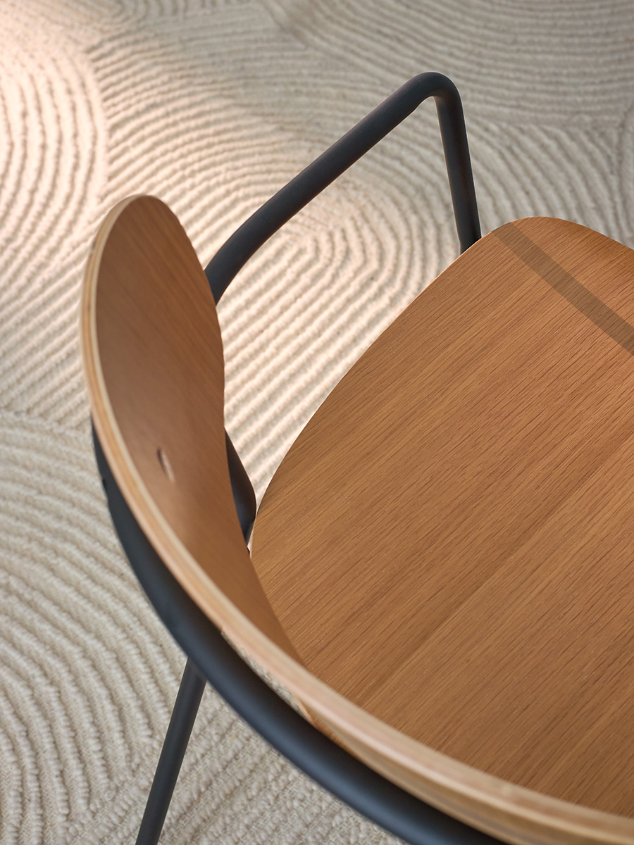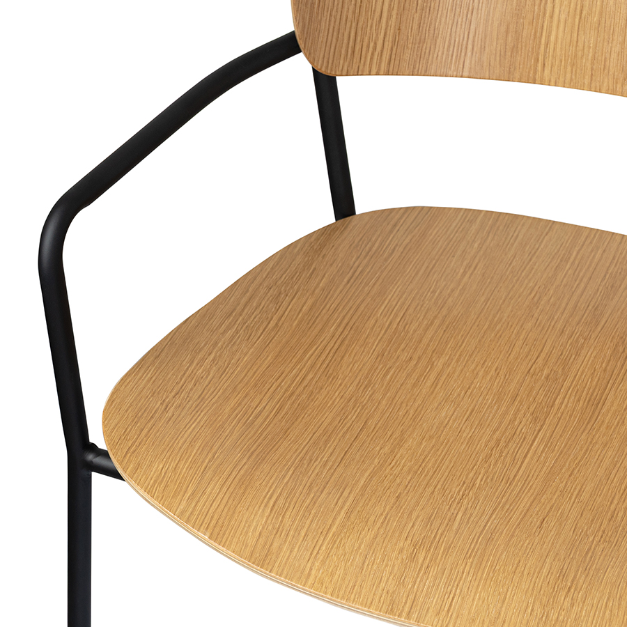 - Спинка и сиденье из шпонированной фанеры не боятся механических повреждений, воздействия влаги, температурных перепадов и деформации, обеспечивают стулу привлекательный вид.