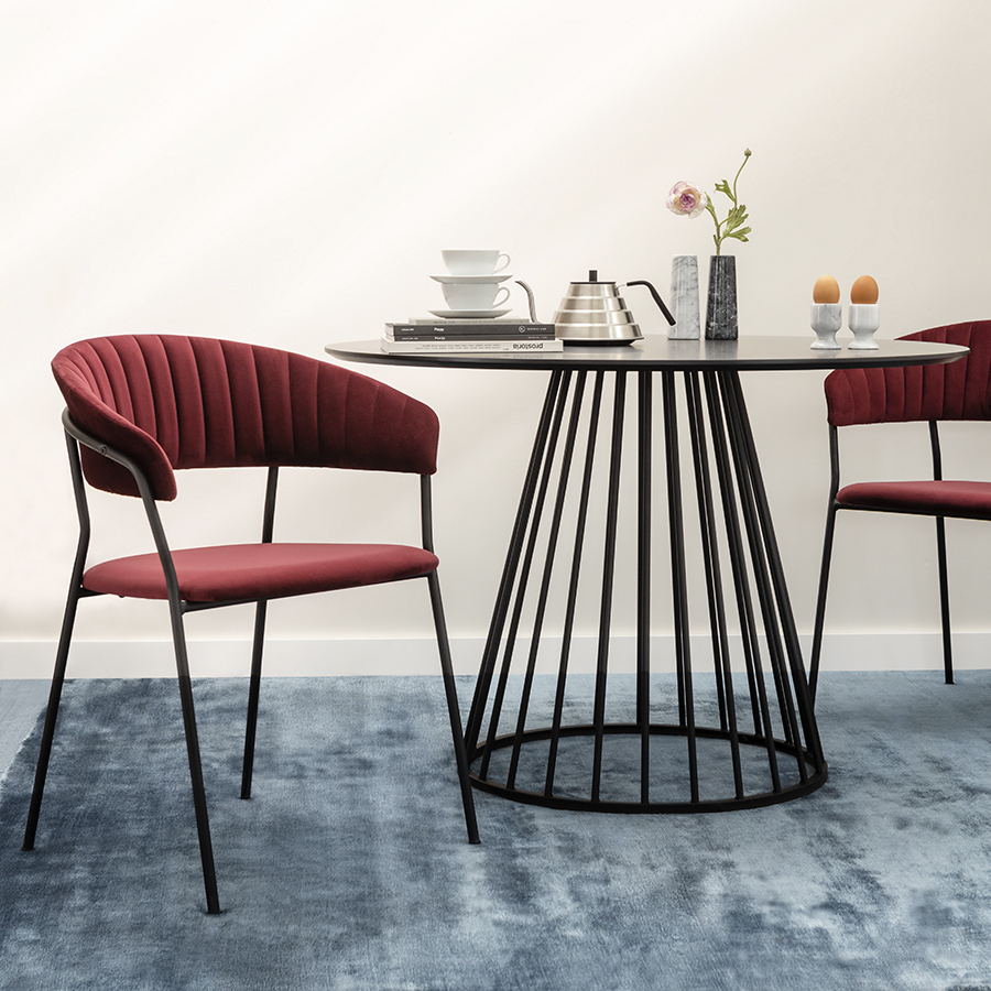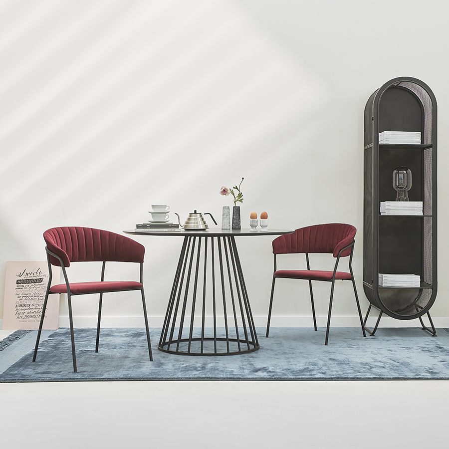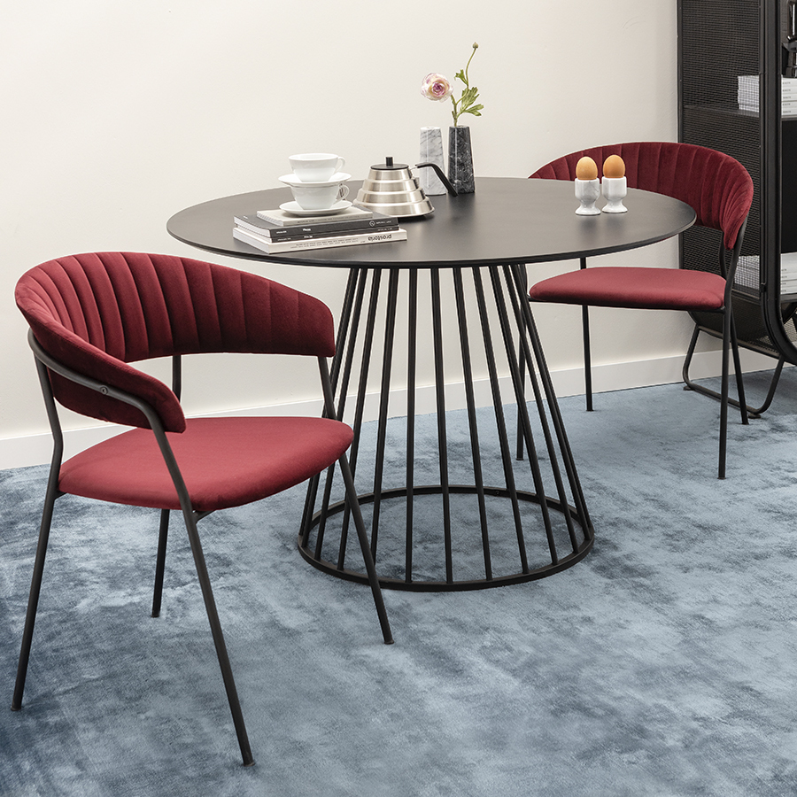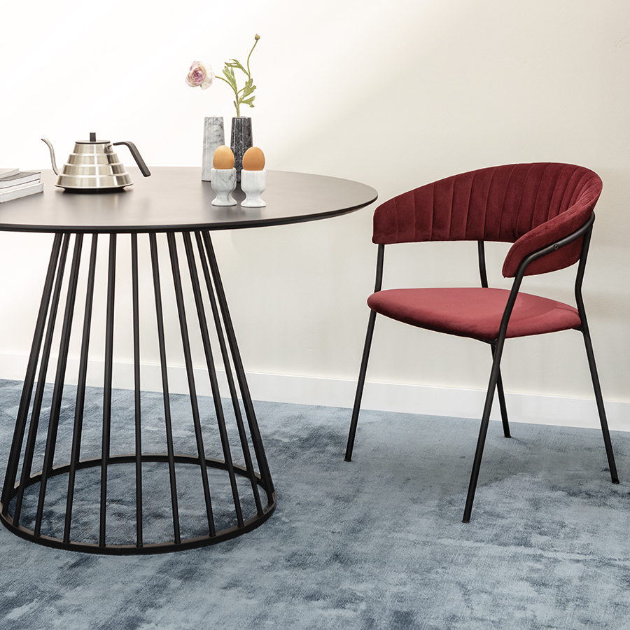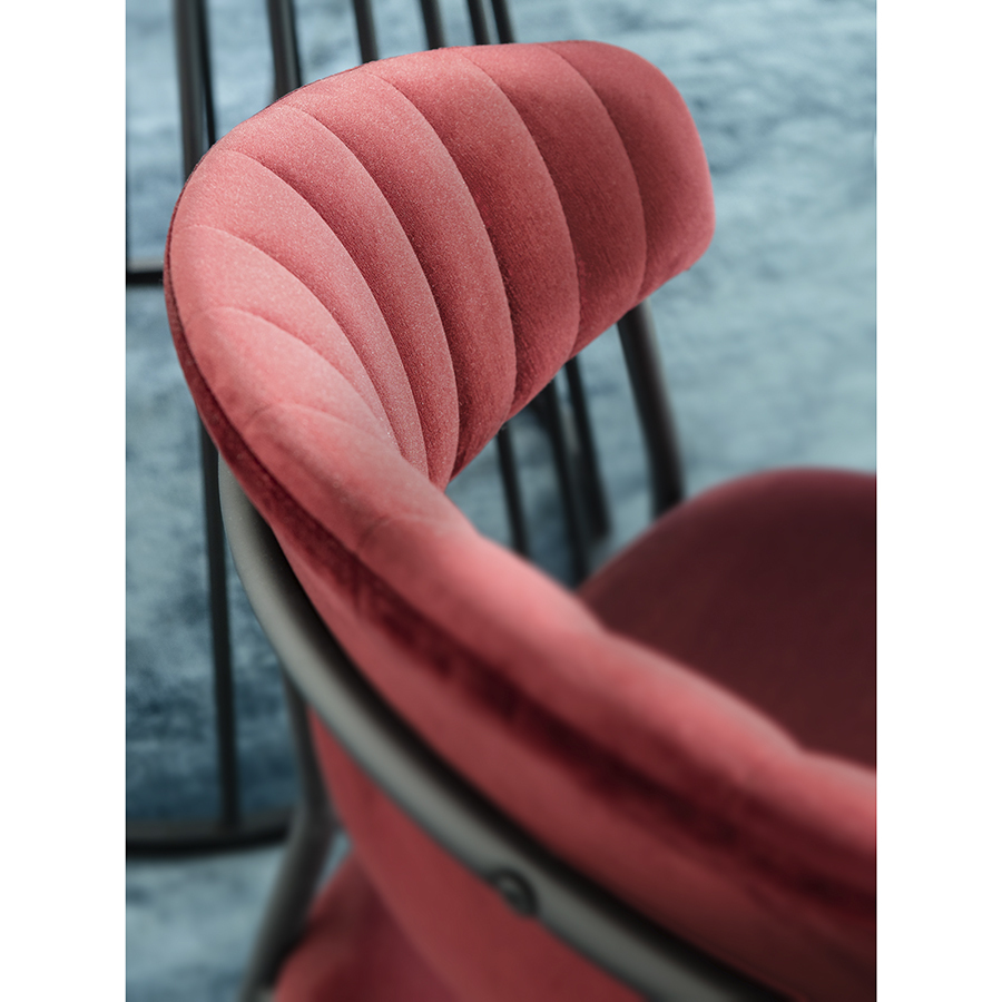 Мягкие сиденье и спинка, обтянутые велюром, создают комфорт во время отдыха на стуле. Материал с бархатистой фактурой обеспечивает красивый визуальный эффект и дарит приятные тактильные ощущения. Помимо высоких декоративных свойств ткань обивки характеризуется долговечностью и устойчивостью к износу. Железные ножки гарантируют конструкции прочность и надежность. Такой тандем материалов позволяет сочетать стул с различной отделкой и декором.