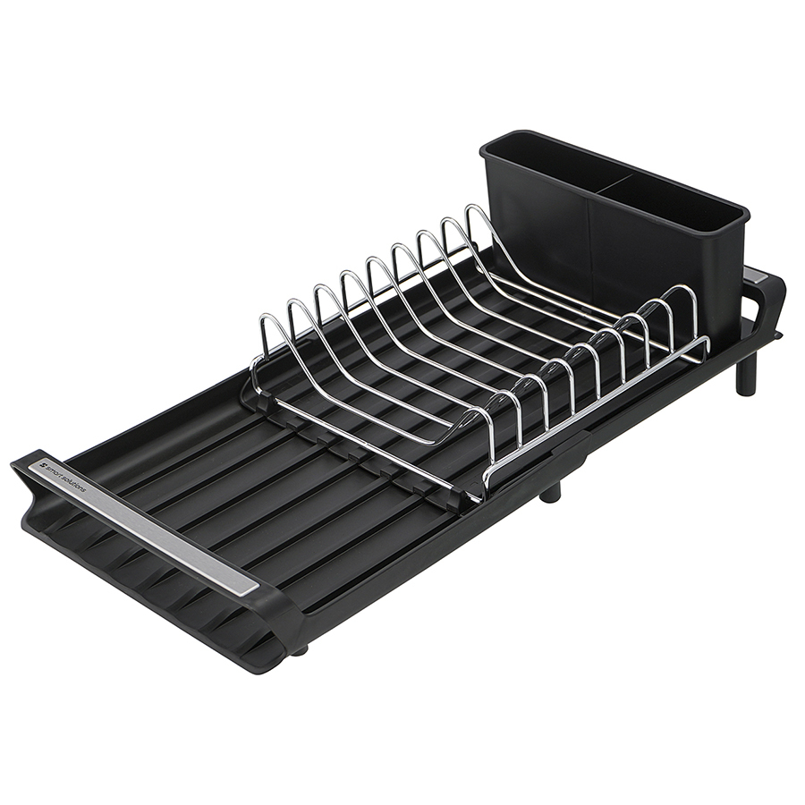 Сушилка Atle – компактная, но в то же время вместительная модель с раздвижной конструкцией, в которой предусмотрены отделения для посуды и кухонных принадлежностей. Удобное размещение и надежную фиксацию тарелок и других емкостей обеспечивают железные разделители. Поддон выполнен из практичного полипропилена, который легко моется. Стальные элементы на корпусе имеют специальное покрытие против отпечатков пальцев. Настольную сушилку можно размещать в любом месте и для ее установки не требуется делать отверстия в стене.