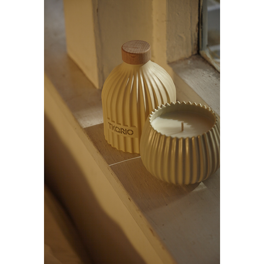 Аромат свечи – настоящий оазис свежести и энергии, который дарит вдохновение и жизненную силу. Он ассоциируется с солнцем, спелыми фруктами, яркими цветами и теплыми летними днями, наполненными приятными моментами. Бодрящие цитрусовые ноты красиво оттеняются легкими цветочными аккордами. Мускус и ваниль в базе придают ароматической композиции глубину.