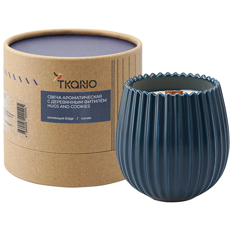 Свеча ароматическая с деревянным фитилем Hugs and Cookies синего цвета из коллекции Edge с дизайном, вдохновленным русскими традициями, отлично подойдет для домашнего декора и создания в интерьере уютной, расслабляющей атмосферы. Фактурные грани и округлая поверхность фарфорового стакана отсылают нас к образу купола – символу духовного подъема и стремления к совершенству. Экологичные материалы, такие как соевый, кокосовый воск и фитиль из натурального дерева делают свечу безопасной для здоровья и окружающей среды. При горении она не выделяет вредных соединений и не коптит. Однако, во избежание перегрева стакана, рекомендуем не зажигать ее более, чем на 4 часа.