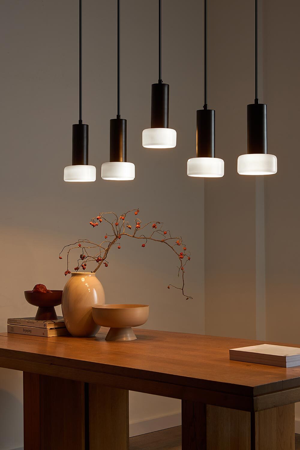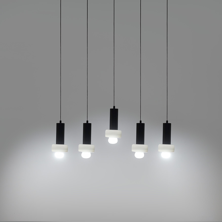 Светильник подвесной каскадный Fungus, Ø15х25 см, 5 плафонов, белый/черный