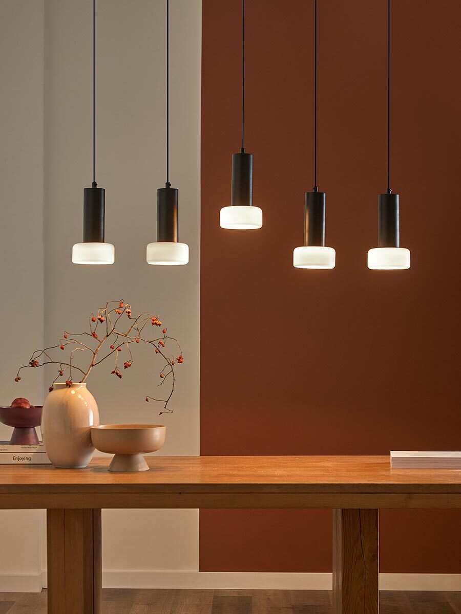- Плафоны выполнены из непрозрачного стекла и расположены на разной высоте, что позволяет добиться комфортного, уютного освещения.