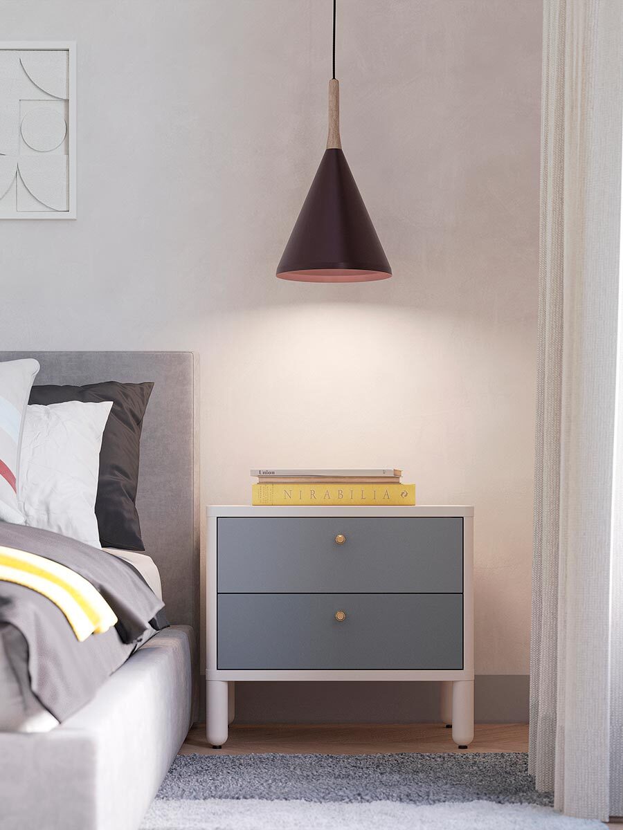 - Непрозрачный плафон вытянутой формы полностью закрывает лампу, создавая мягкое, направленное освещение.