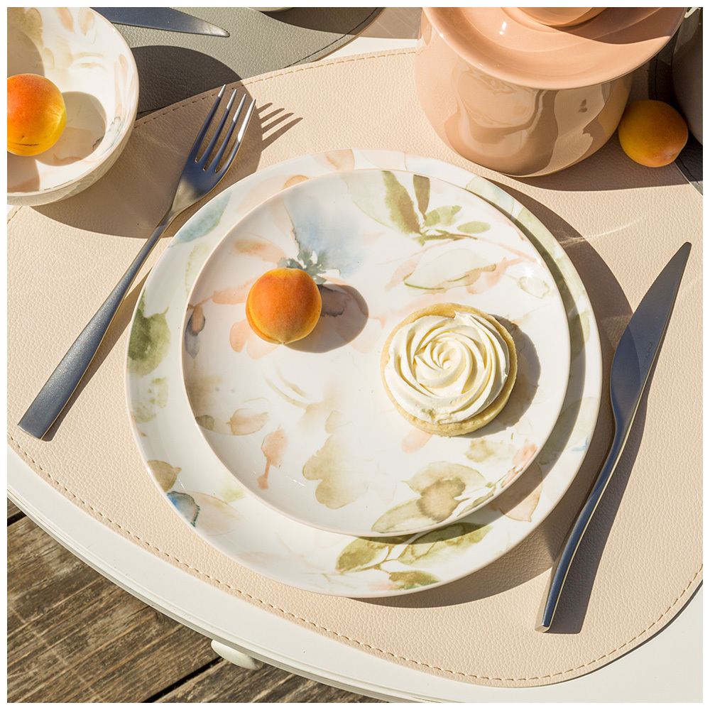 TM Bronco коллекция «Aquarelle» - это посуда с ультрамодным акварельным рисунком выполненным в технике тампонной печати. Новый имидж посуды на каждый день. Упрочненный фарфор для активного использования. Современные формы и удобные размеры. Натуральные цвета. Чистый фарфор. Сверкающая глазурь. Прекрасно сочетается с цветной посудой коллекций «Mirage»и «Sentiment». Износостойка. Надолго сохраняет свой первоначальный вид. Можно смело использовать в микроволновой печи, ставить в холодильник и мыть в посудомоечной машине. Посуда прошла сертификацию. Безопасна для контакта с пищевыми продуктами.