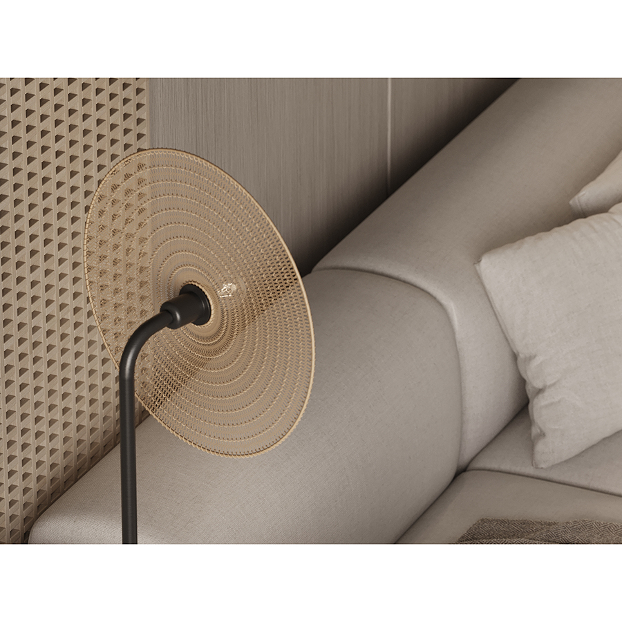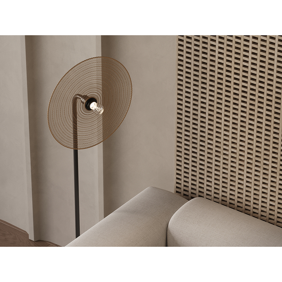 Торшер Vinger от бренда Bergenson Bjorn – прекрасный способ добавить интерьеру характер и индивидуальность. Напольный светильник привлекает качественным исполнением и интересным дизайном. Его плафон из металлической сетки рисует на стенах и потолке живописные тени, создавая в помещении волшебную атмосферу.