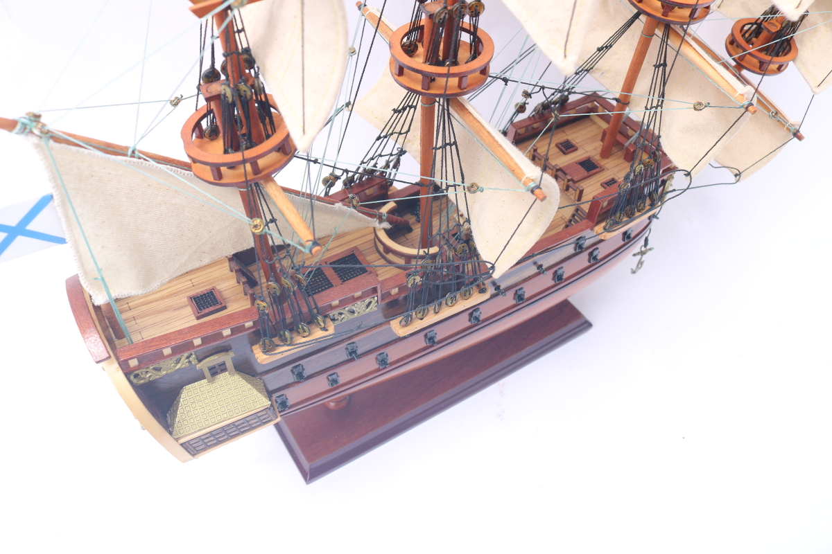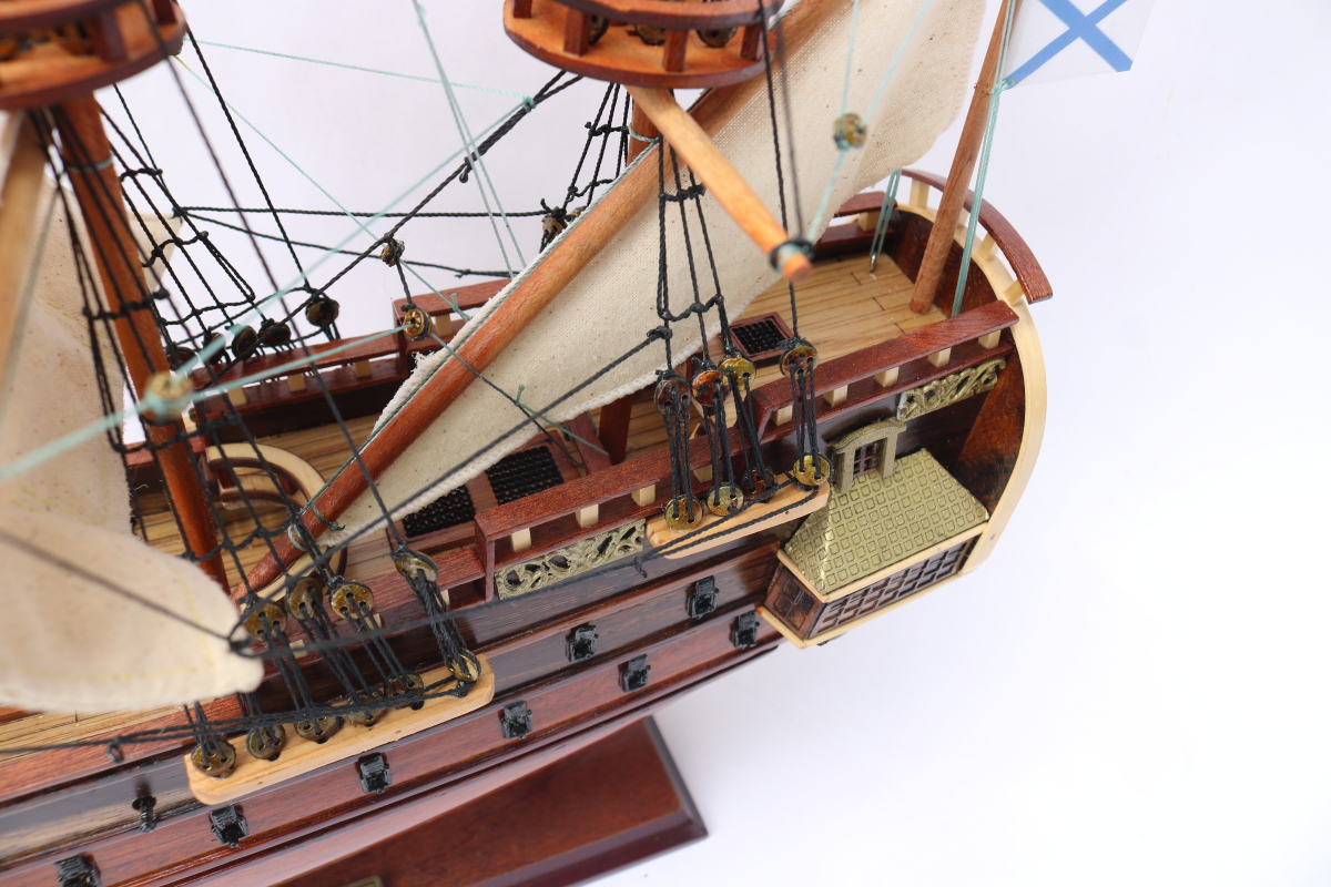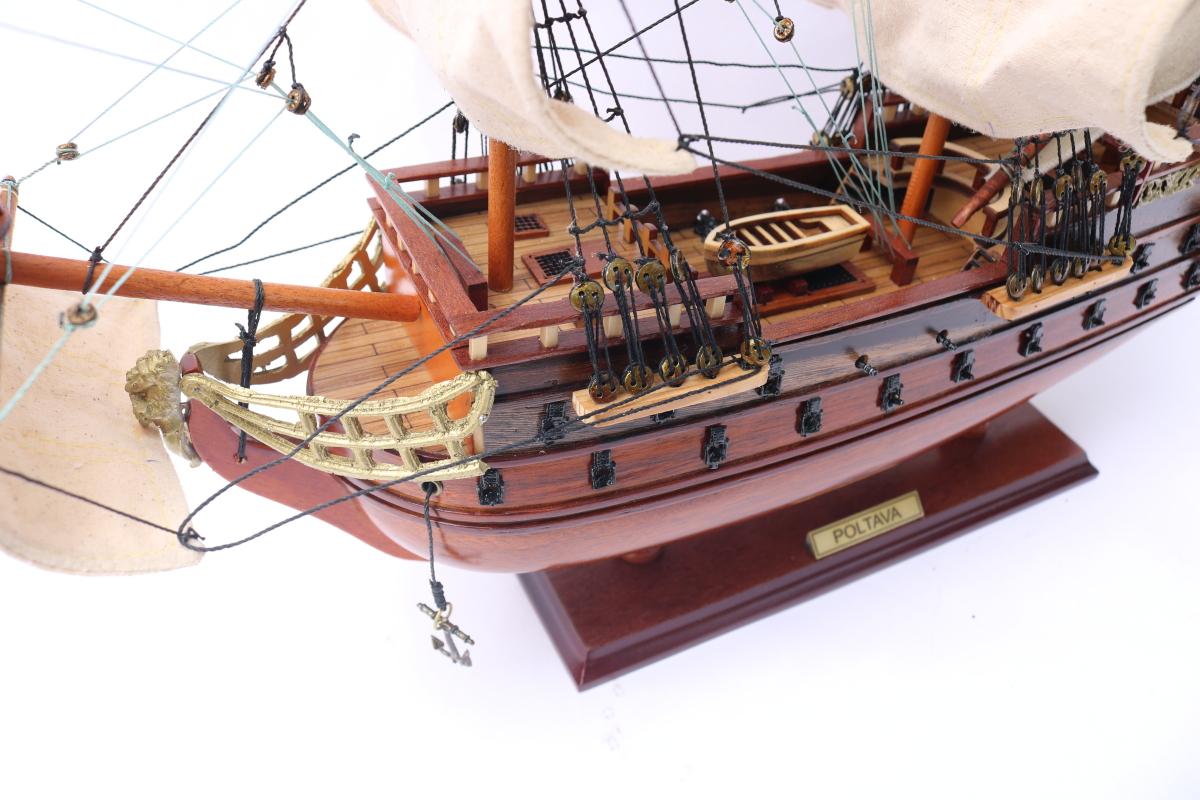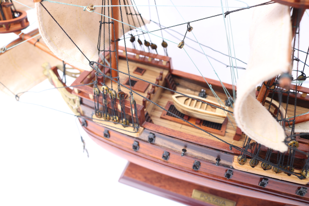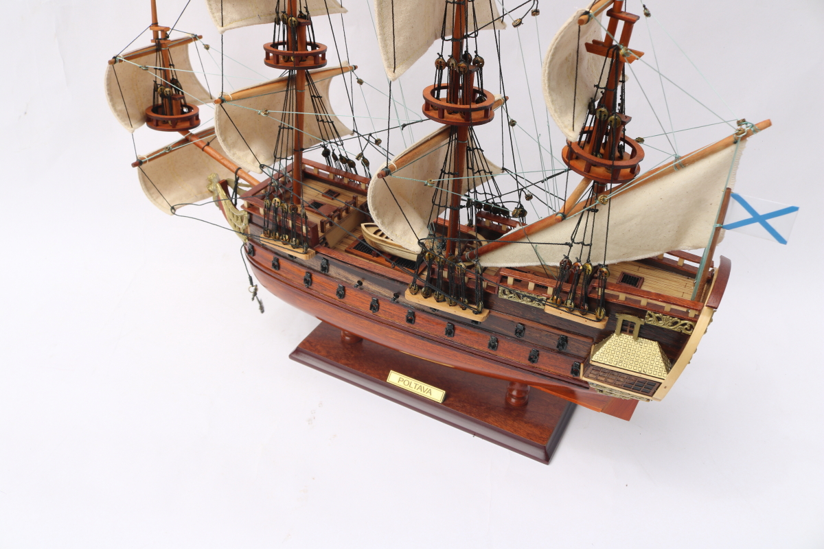 Корабль получил своё название в честь победы над шведами в Полтавской битве, и стал первым линейным кораблём, заложенным и построенным в Санкт-Петербургском адмиралтействе.