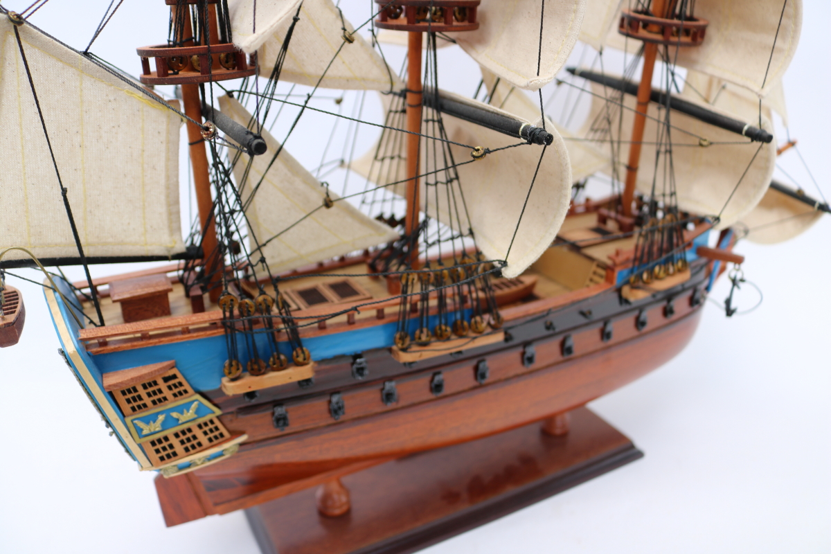 Длина корабля 48,8, ширина 5,8 м. От 66 до 72 пушек. Экипаж от 476 до 688 человек.