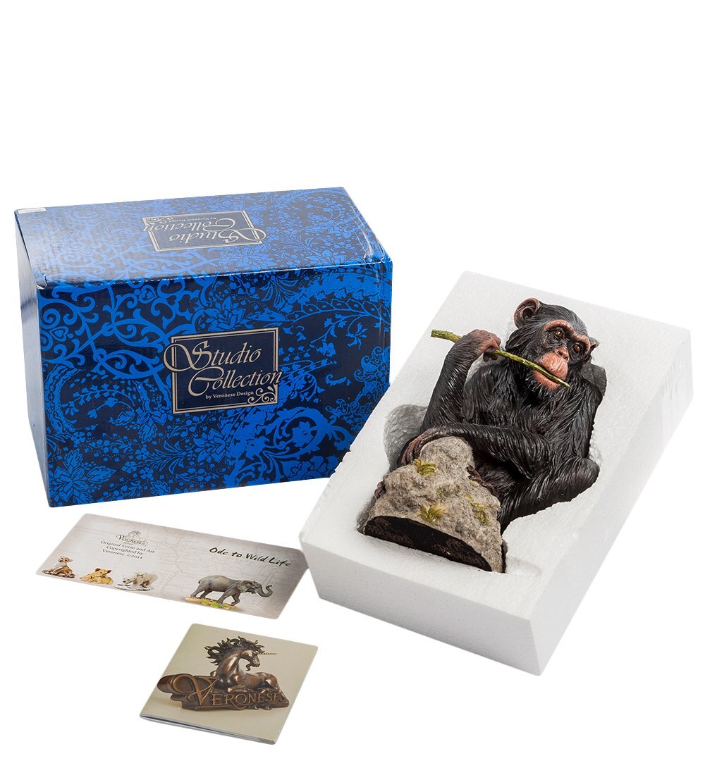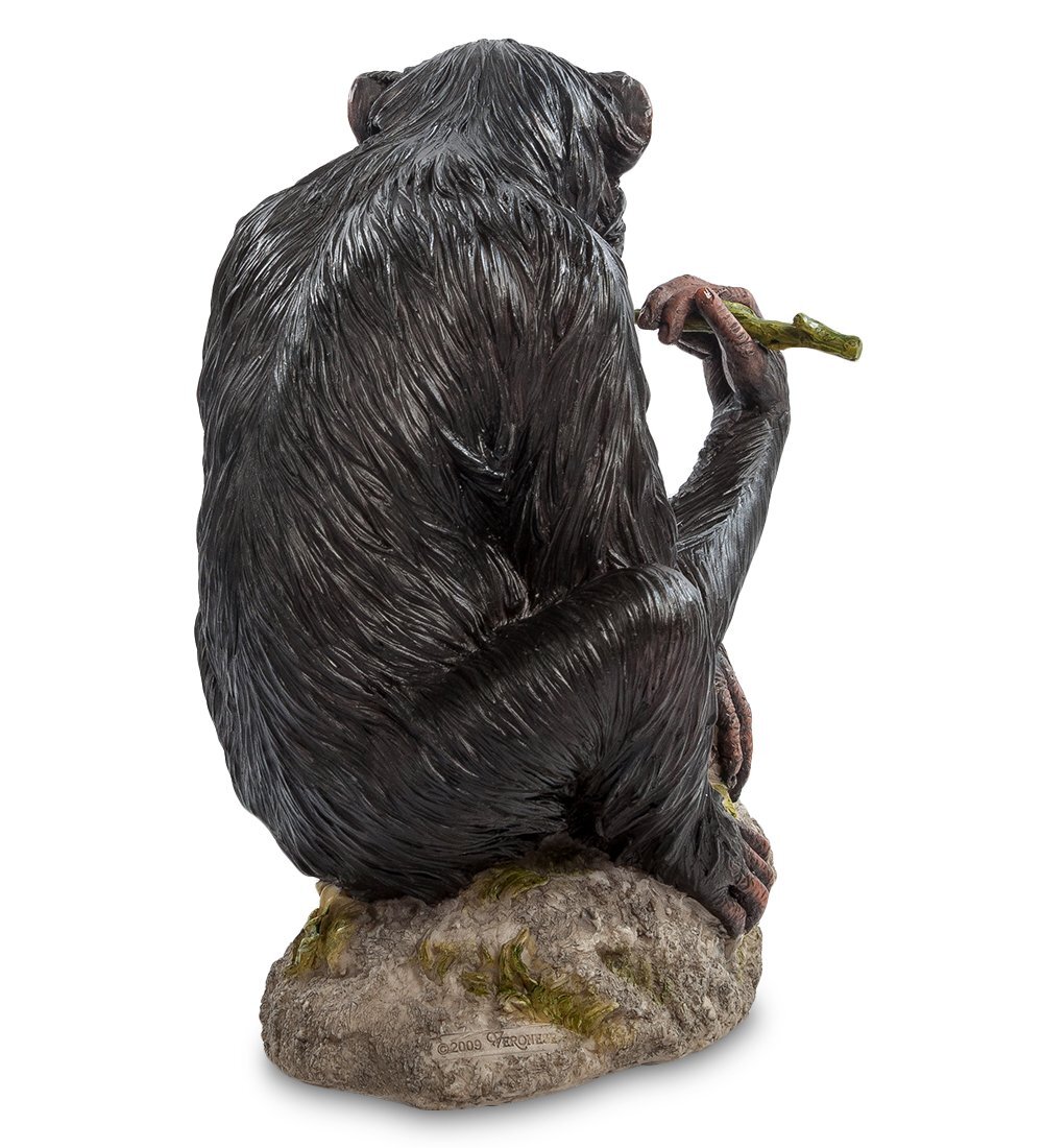 Если вы любите разную живность, держите живых домашних животных и коллекционируете фигурки экзотических зверей с разных континентов, статуэтка «Шимпанзе» из полистоуна вам определенно понравится. Она реалистично исполнена, если бы не маленький размер, могла бы сойти за настоящую обезьяну. В ее лапе – зеленый стебель, который обезьянка покусывает с той же задумчивостью, с какой школьник покусывает карандаш на уроке литературы. Шимпанзе взгромоздилась на светло-серый камень и с интересом наблюдает за происходящим вдалеке. Шимпанзе черного цвета, а пальцы на лапах и мордочка – розовые.