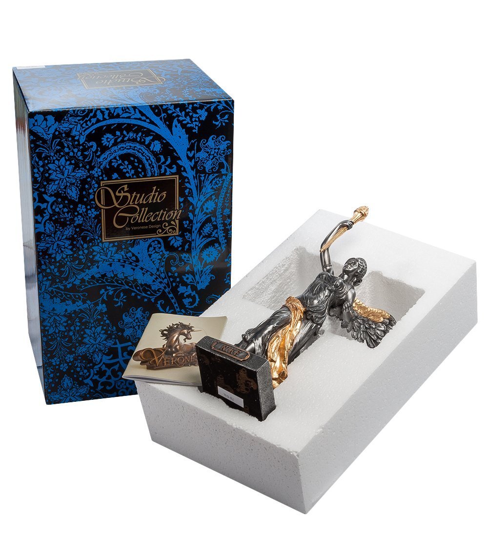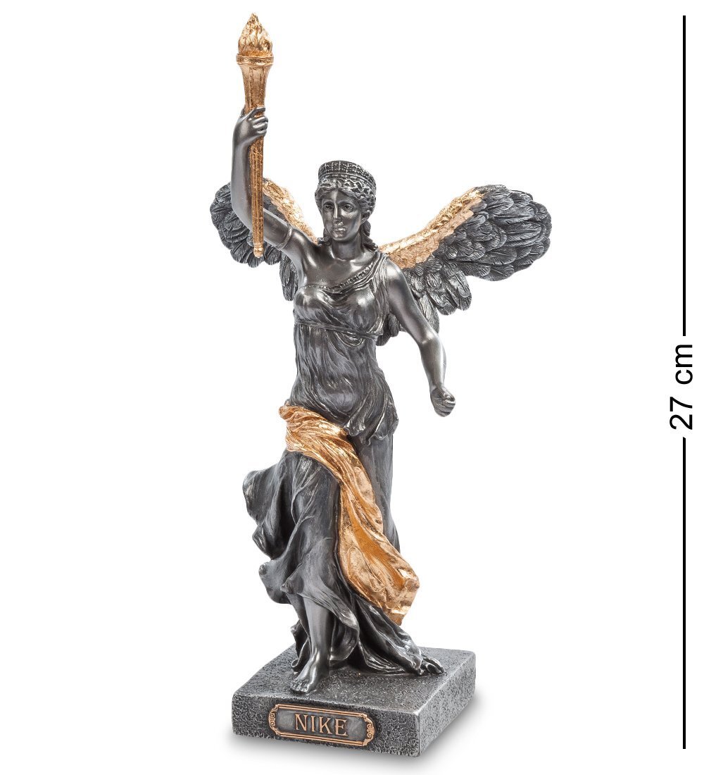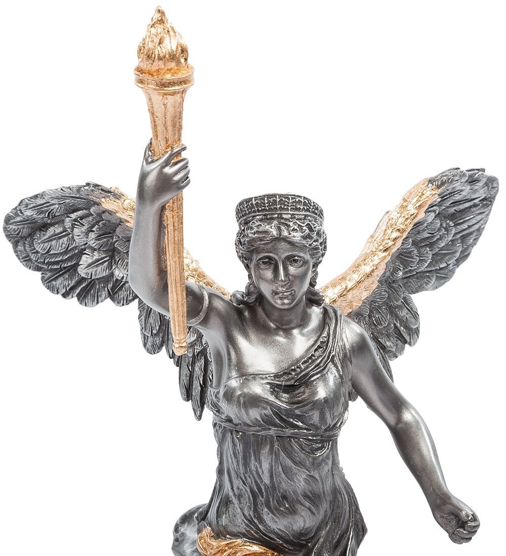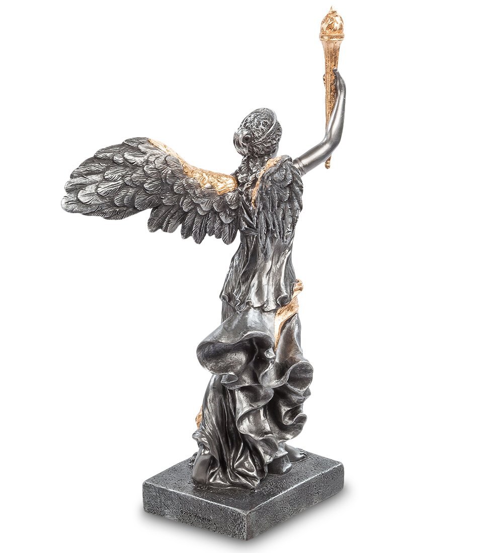 За спиной женщины крылья, украшенные позолотой, а на бедрах – позолоченная ткань, указывающая на божественную природу владелицы. Высота статуэтки – 27 сантиметров. Лучше всего Ника будет смотреться в комнате, обставленной в старинном стиле, или в уютном домашнем кабинете. Фигурку «Богиня Ника с факелом» можно подарить другу-военному, а также любому человеку с боевым характером. Ника понравится и тем, кто посвятил жизнь просвещению.