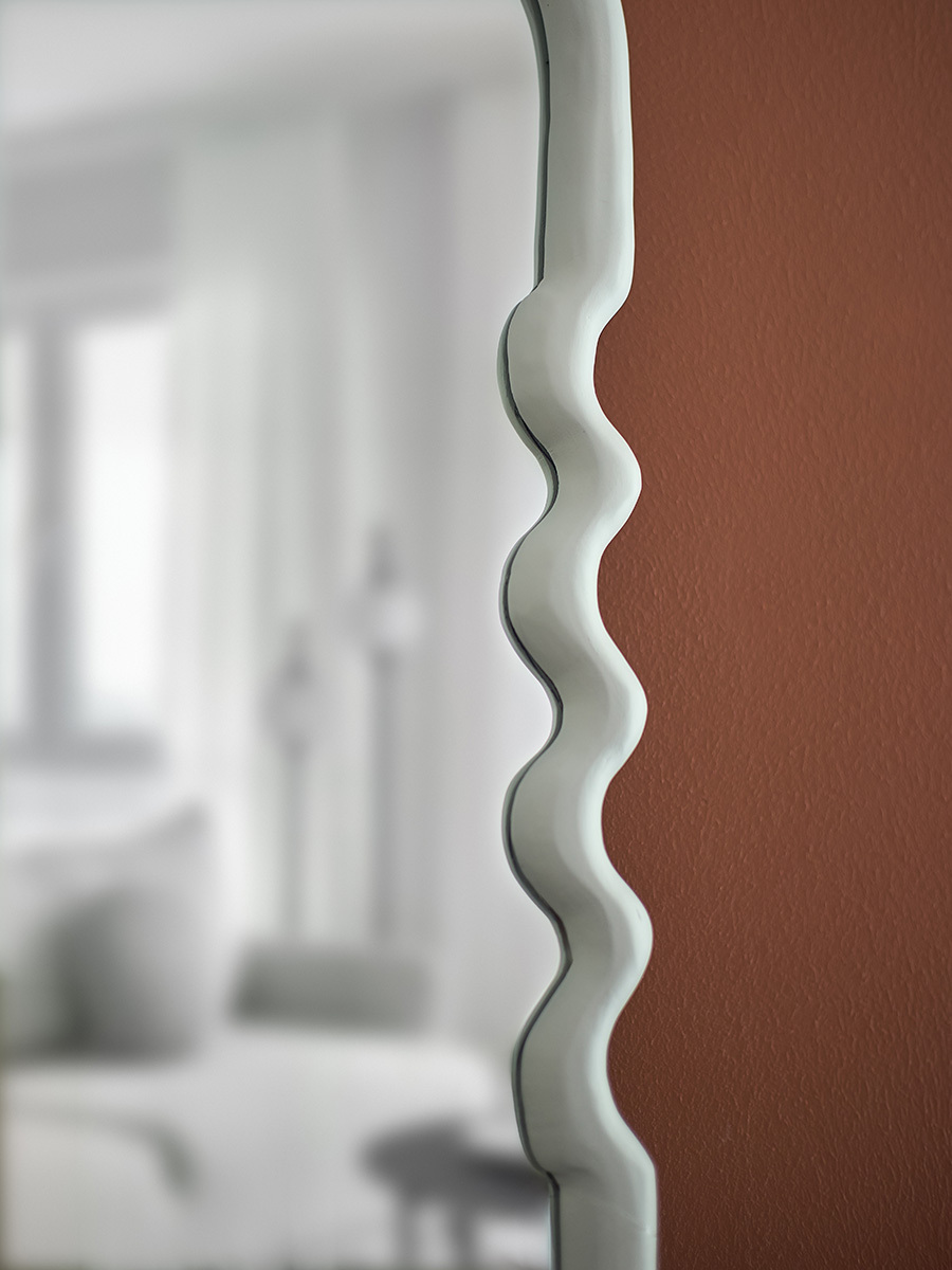 Зеркало Fluid идеально впишется в различные интерьерные решения – от скандинавского стиля, до ретро и бохо. Благодаря раме из древесины манго оно добавит в ваш дом ощущение уюта, тепла и природную элегантность. Используйте его в прихожей, спальне или гостиной, чтобы создать эффектный акцент и визуально расширить пространство.