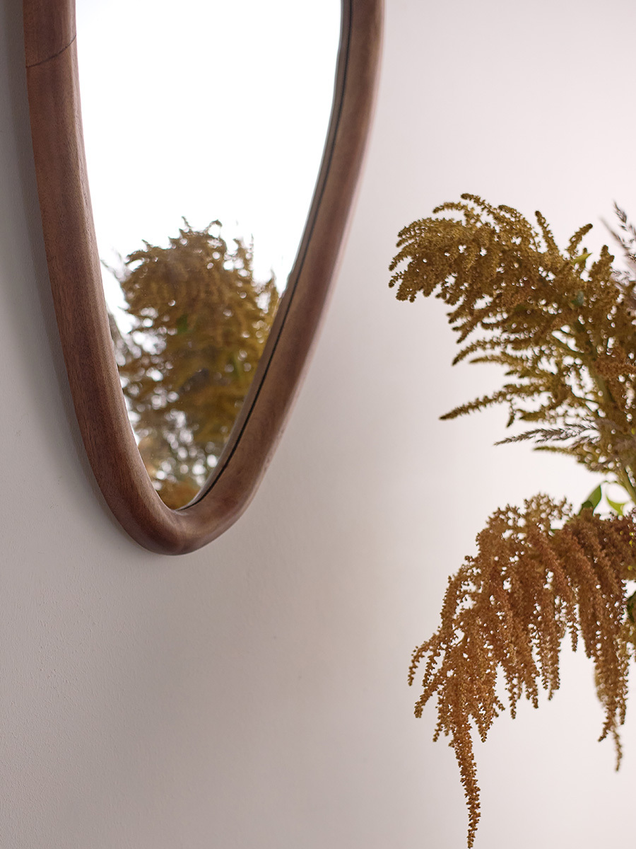 Зеркало настенное Torhill с рамой из древесины манго – прекрасный способ оживить пространство, а также добавить в интерьер ощущение гармонии и природной элегантности.